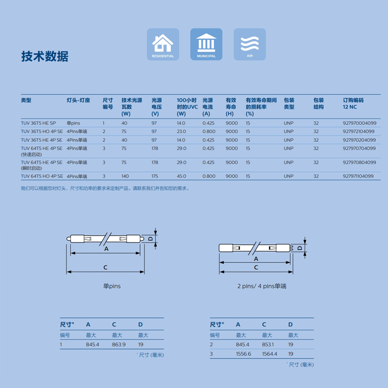75w飞利浦杀菌消毒单端四针灯管