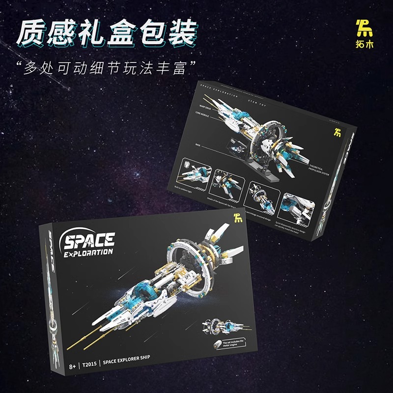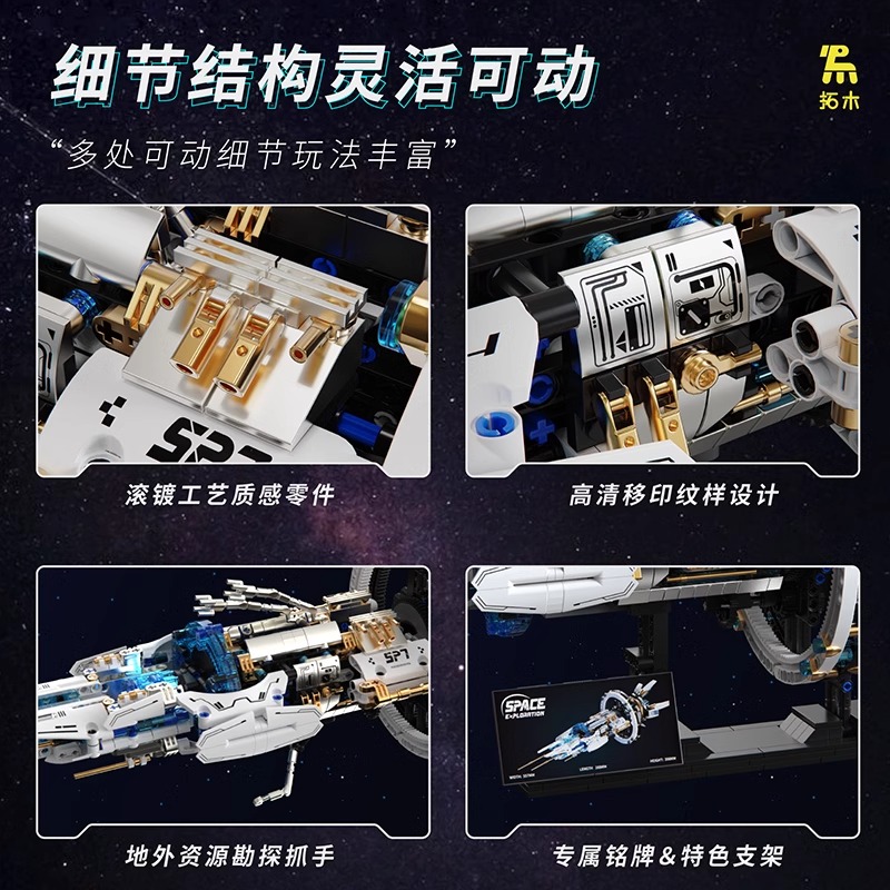 拓木中国航天载人空间站模型高难度积木玩具电动旋转太空舱儿童