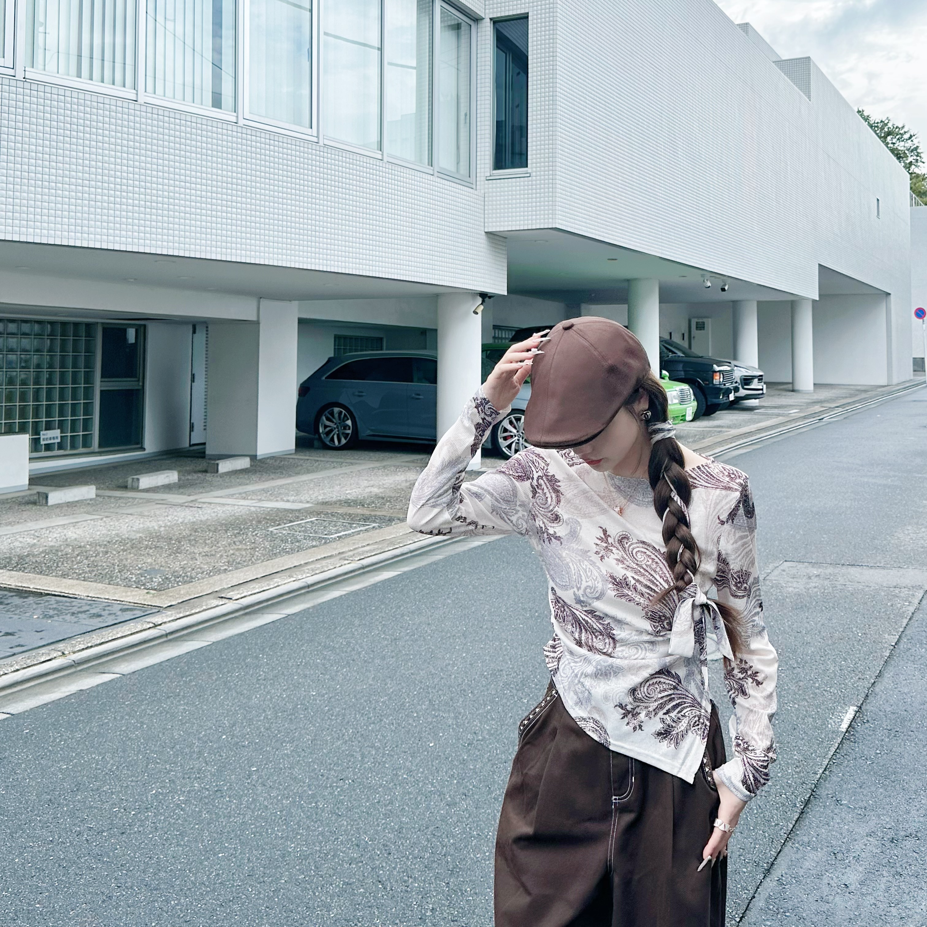 【艺术腰果】表参道设计师 绝美腰果咖色长袖上衣 D25T71708