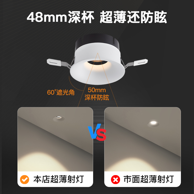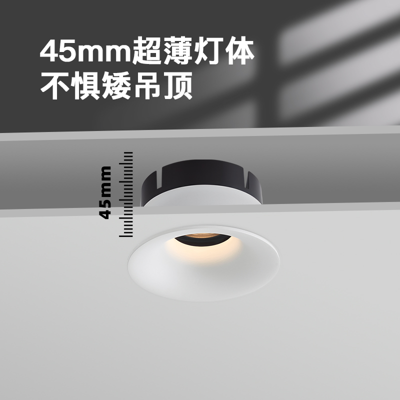 弧面超薄射灯嵌入式小山丘防眩背景墙可调角度矮吊顶天花筒无边框
