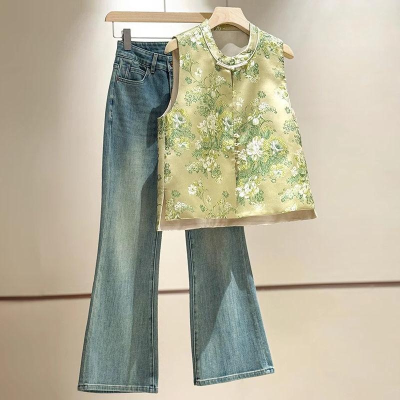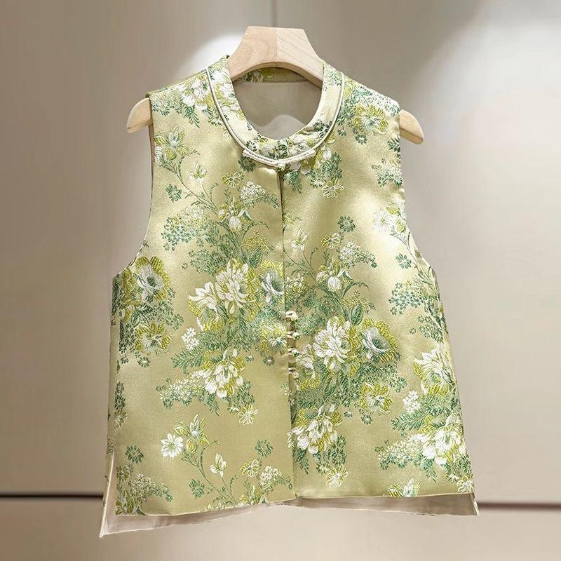 唐装背心马夹新中式坎肩无袖女上衣宋锦国风马甲盘扣重工复古提花