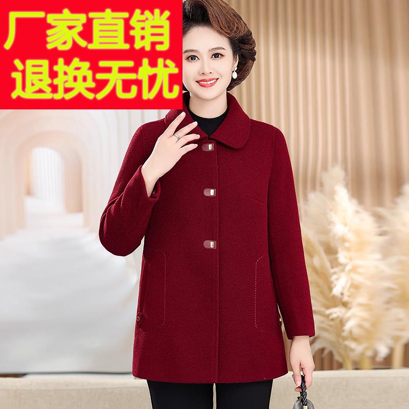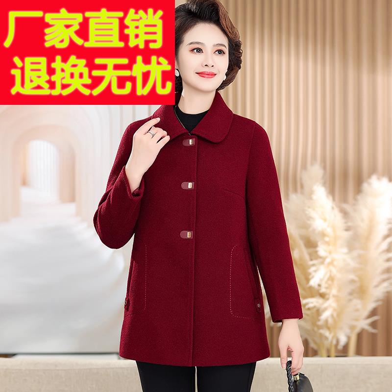 耐看妈妈冬装毛呢羽绒服女中长款大衣2024新款中老年女士保暖外套