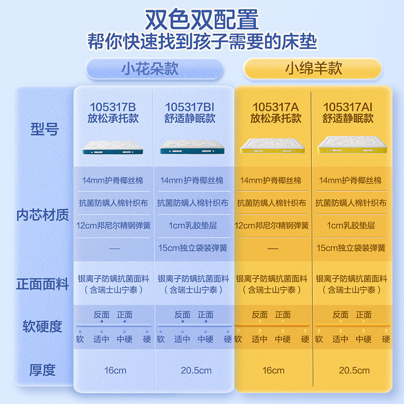 全友家居椰棕护脊儿童青少年床垫