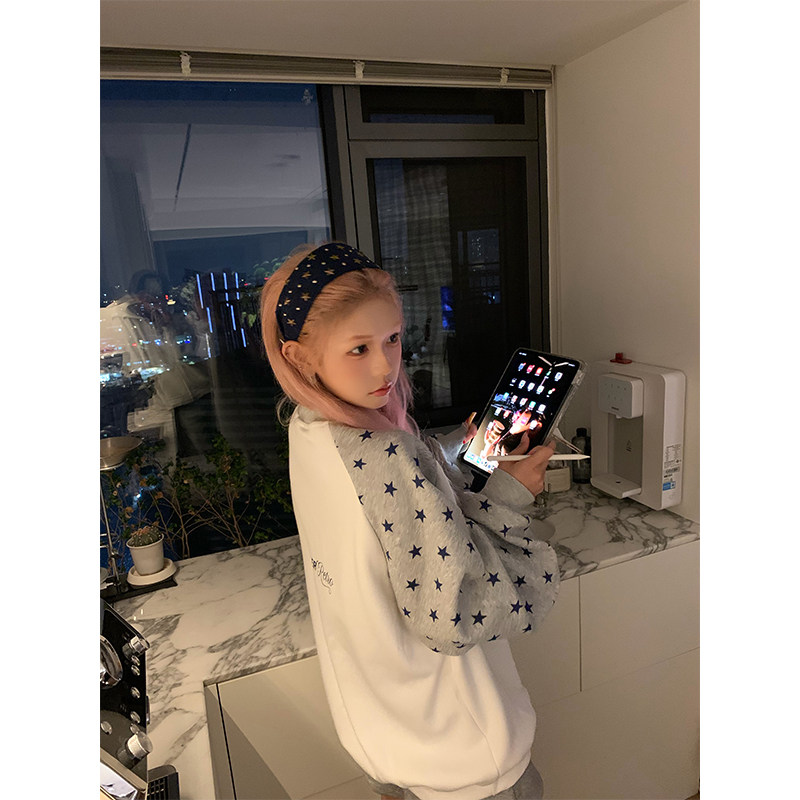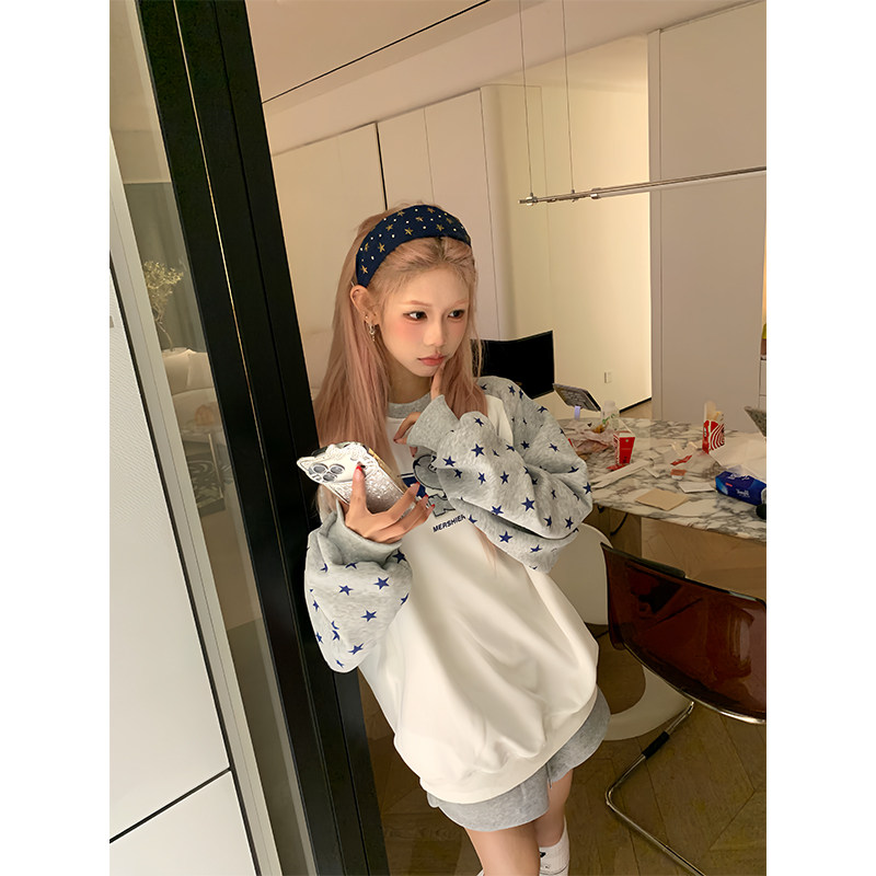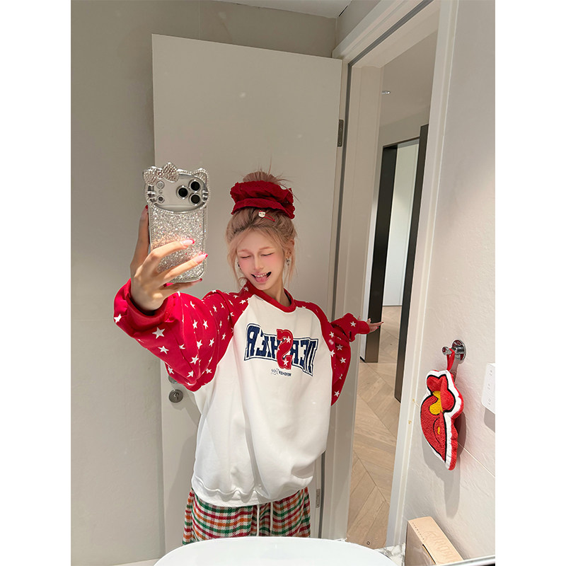 NECOYEP 美式字母印花拼色插肩袖圆领卫衣男女春秋宽松百搭上衣