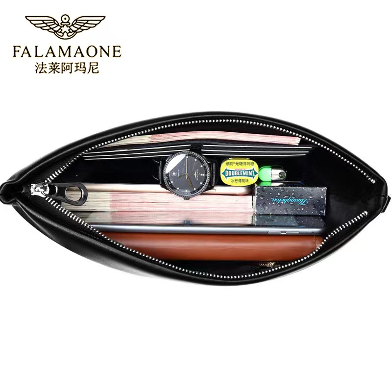 法莱阿玛尼男士商务信封包真皮时尚包大容量头层牛皮手拿包