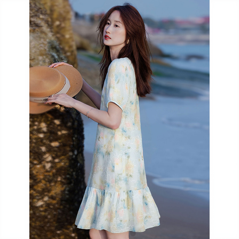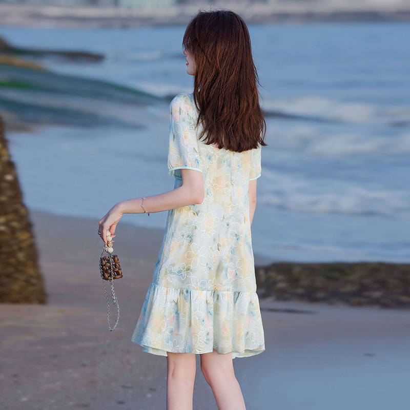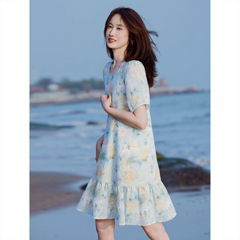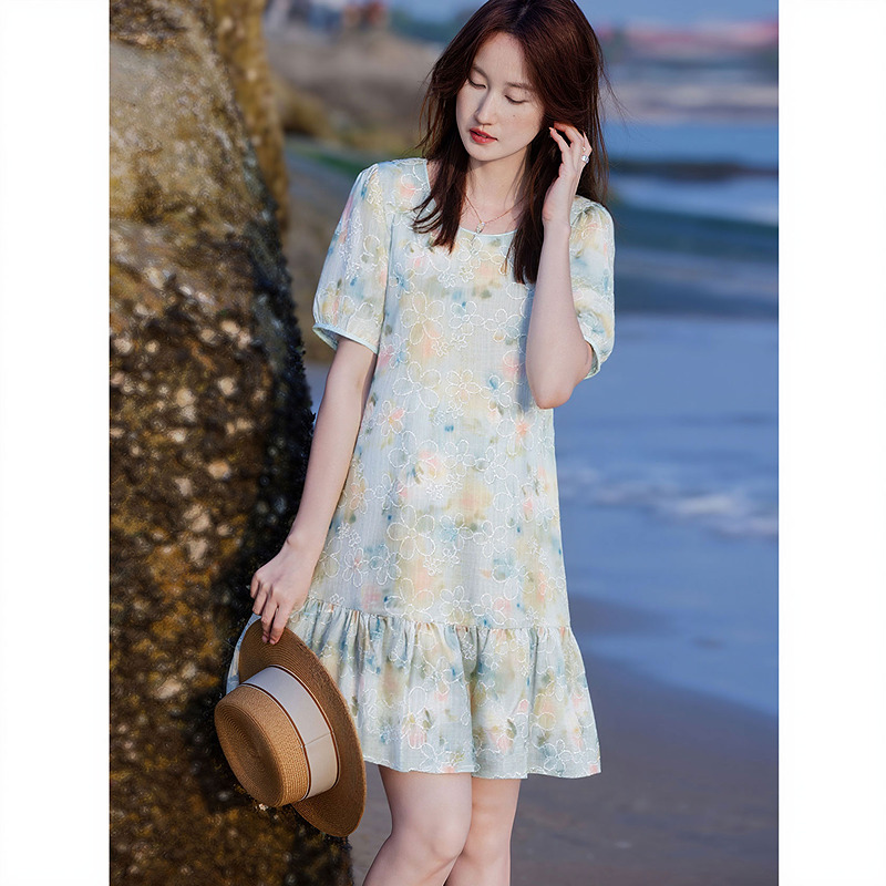 时尚气质休闲夏季浪漫短款连衣裙女士2025年夏季新品碎花减龄裙子