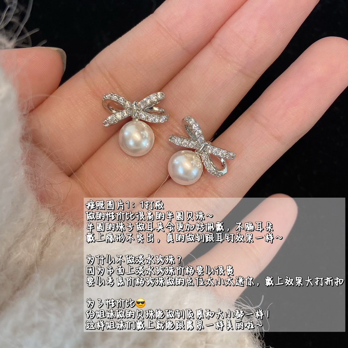 「心事」赵露思同款蝴蝶结珍珠耳饰蚊香盘耳夹耳环银耳钉气质优雅