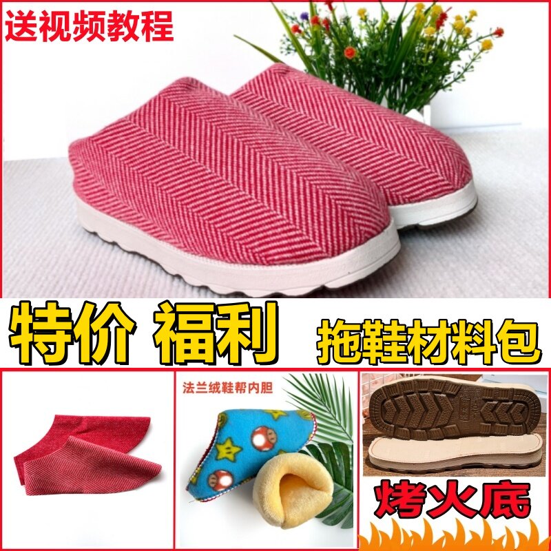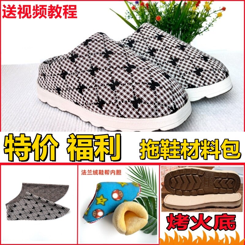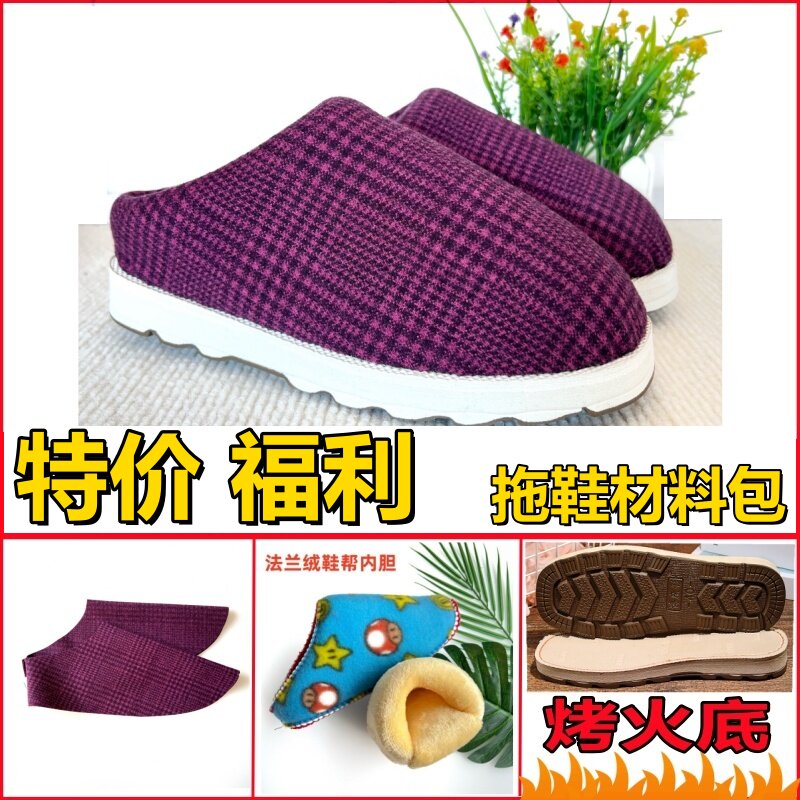 【拖鞋材料包】特价防滑烤火软底手工棉鞋半成品法兰绒内胆保暖