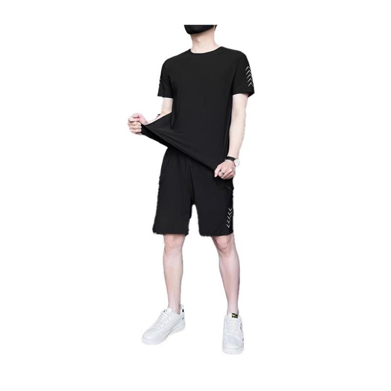 高端休闲运动套装男士夏季2025新款薄款速干冰丝T恤大码五分短裤
