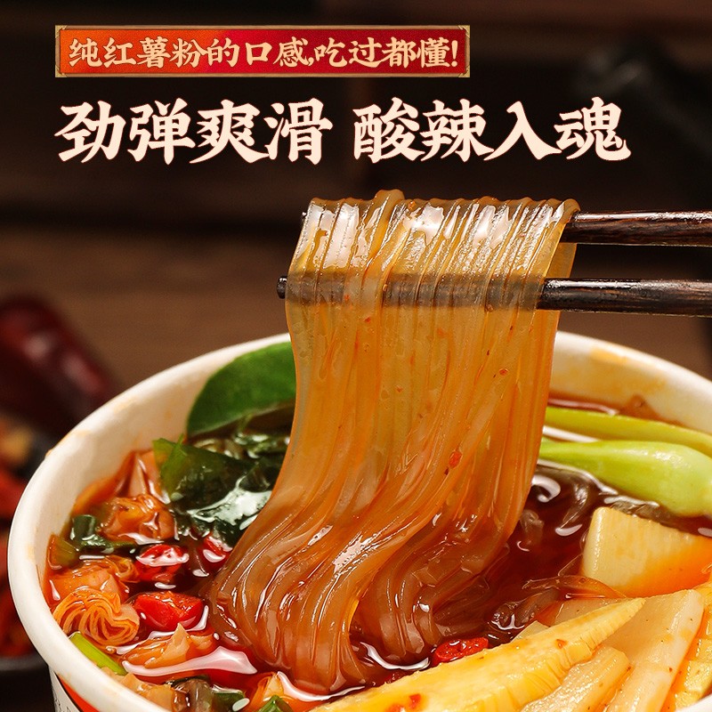【纯红薯粉】【大片脆笋】【绿色食品认证】丽星脆笋酸辣粉140g*6