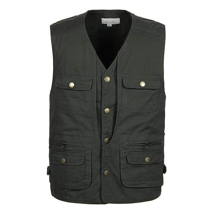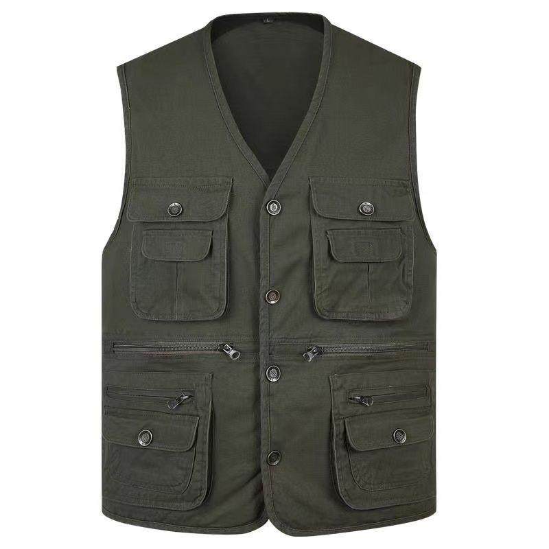春秋装摄影钓鱼马甲中老年爸爸装纯棉多口袋马甲背心中年男坎肩