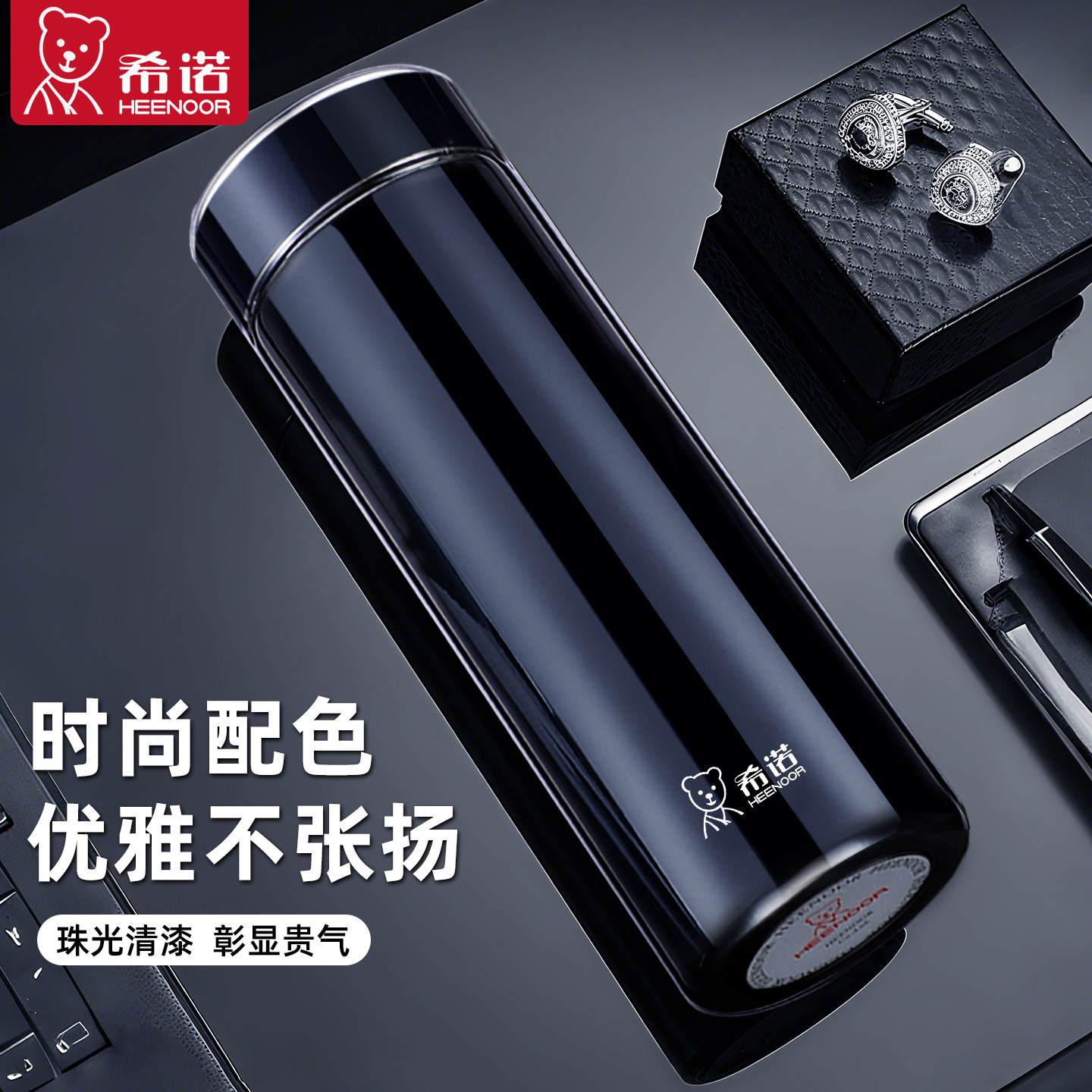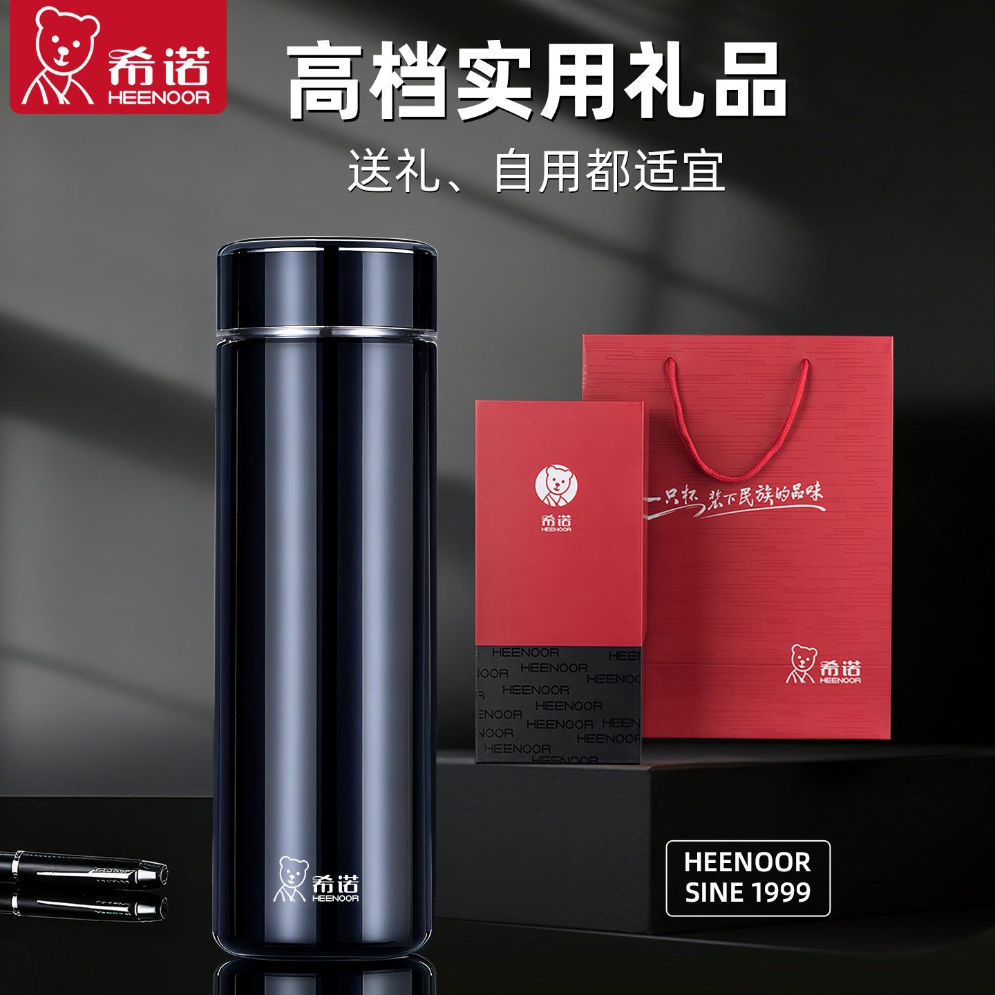 希诺大容量保温杯男士高档泡茶杯新款不锈钢便携商务水杯子礼盒装