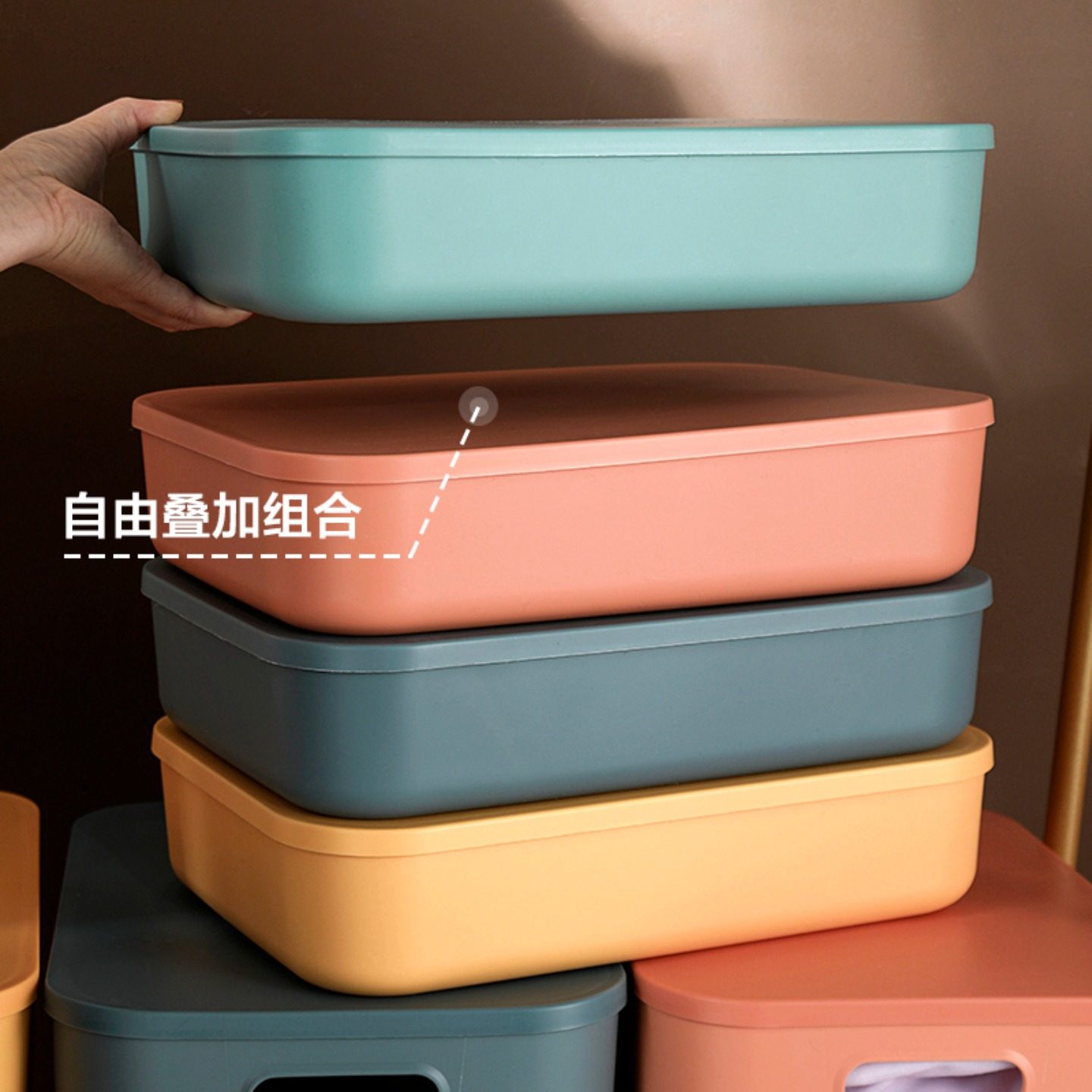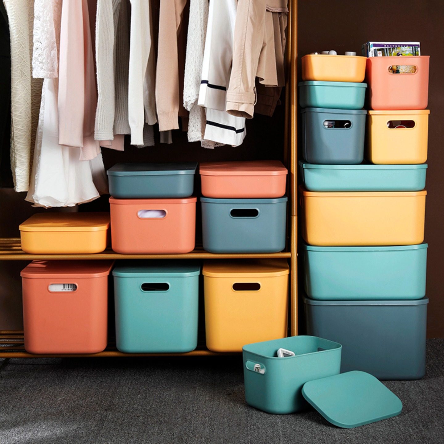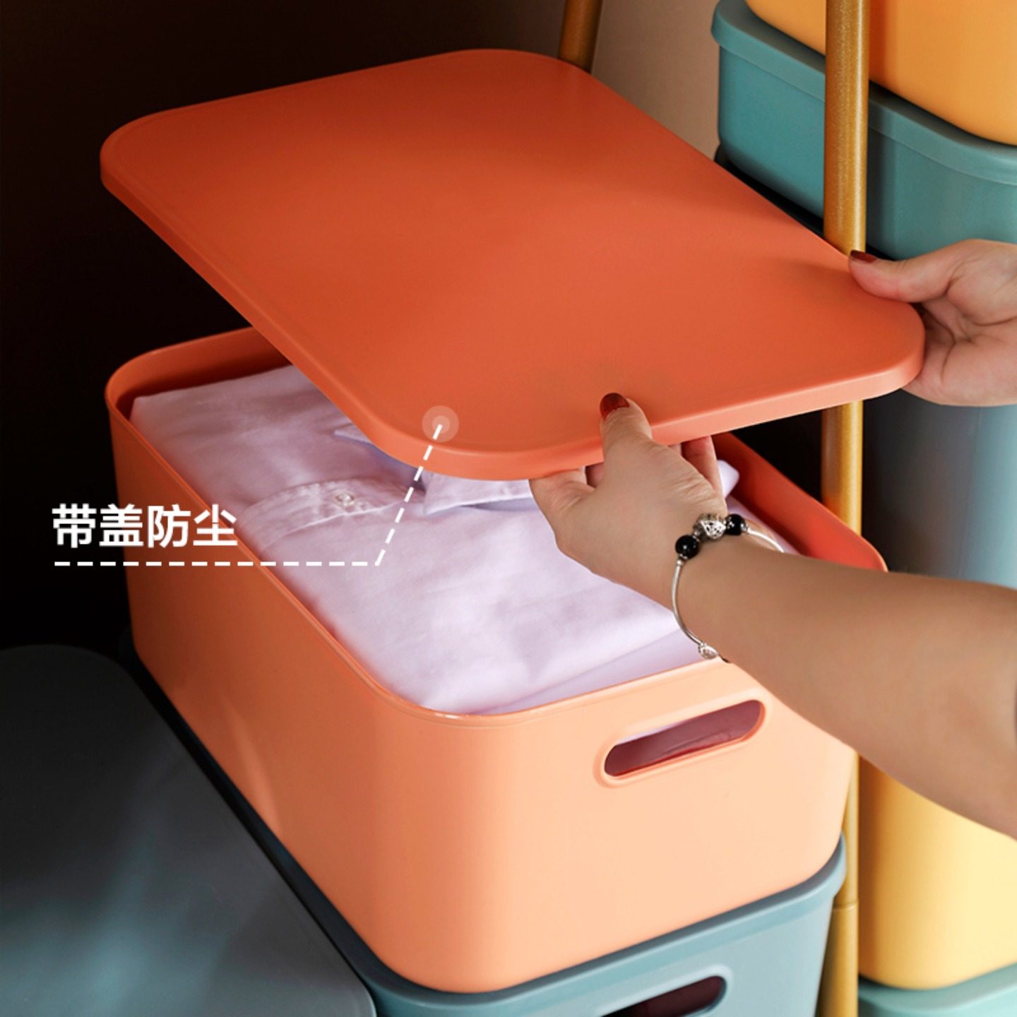 居家家多色带盖整理箱塑料