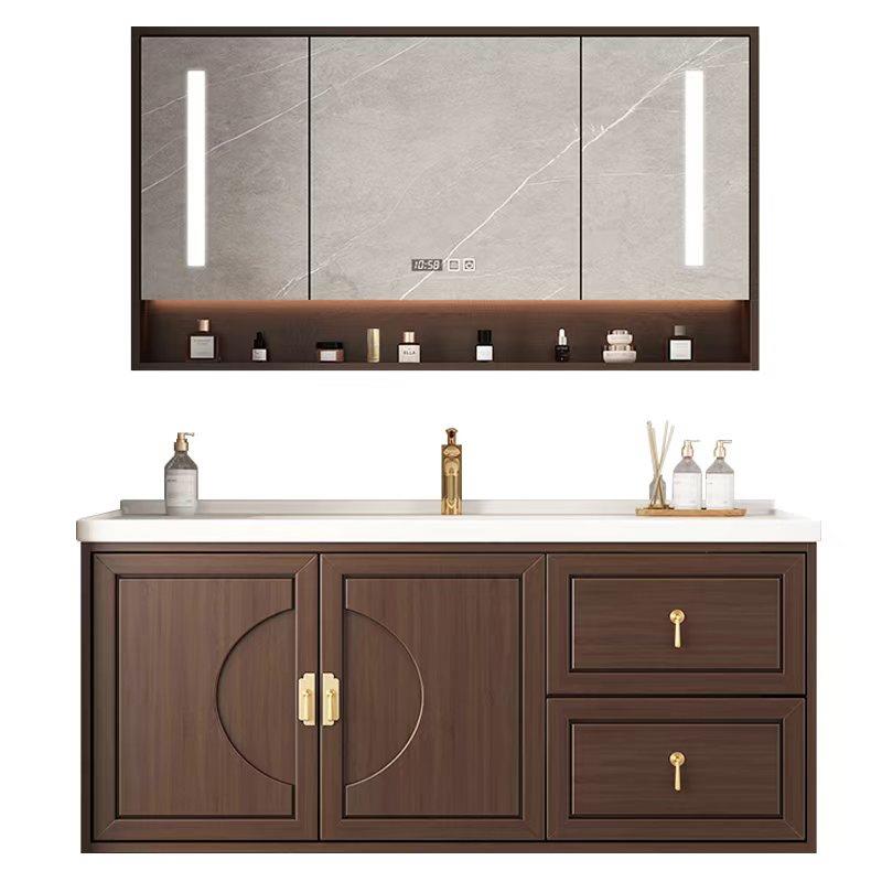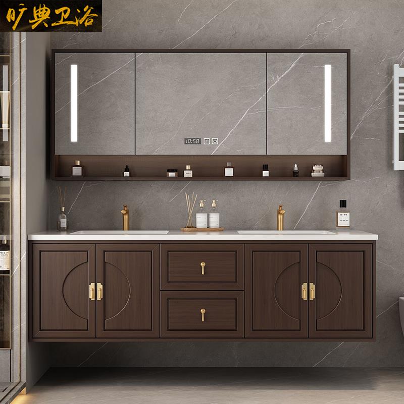 新中式橡木现代浴室柜组合一体陶瓷盆实木智能挂墙式洗脸盆卫浴柜