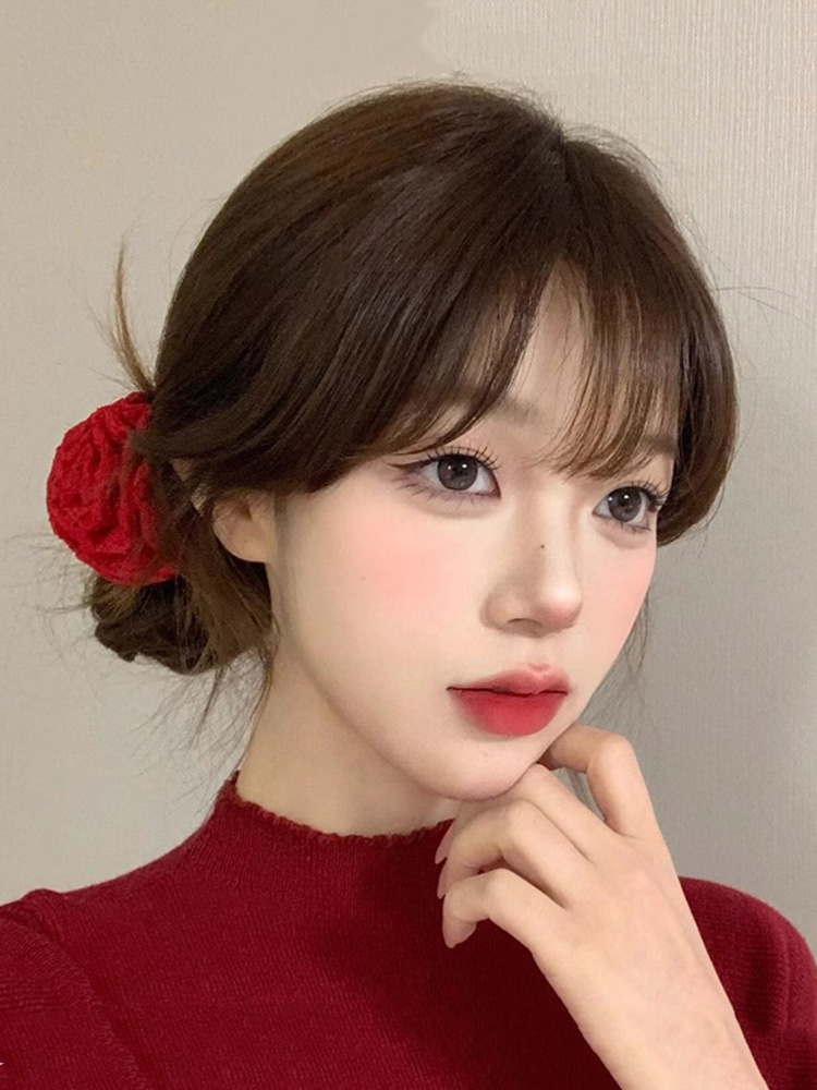 Busan氛围感红色大肠发圈头绳发饰品法式优雅气质低马尾发绳抓夹