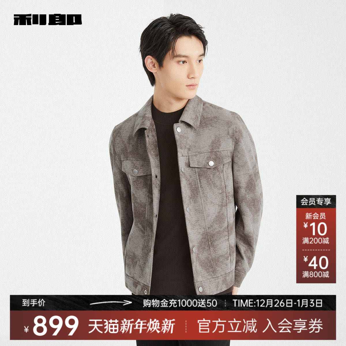 【热燃/绵羊毛】利郎奥莱 短款毛呢大衣男士2025冬季新款夹克外套