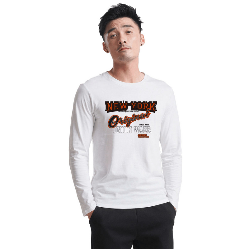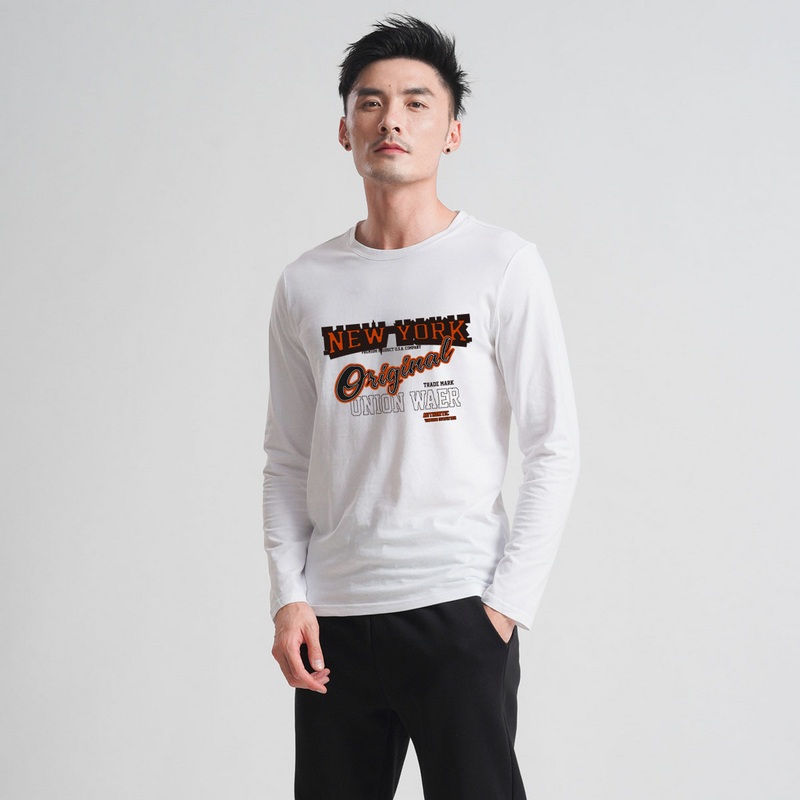 VL真维斯男装字母印花打底衫 冬季男款时尚圆领长袖T恤套头衫