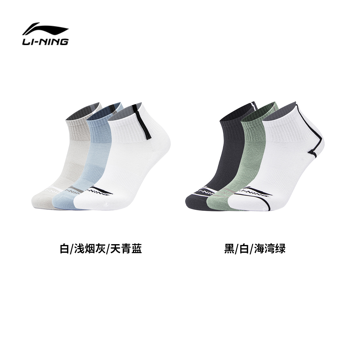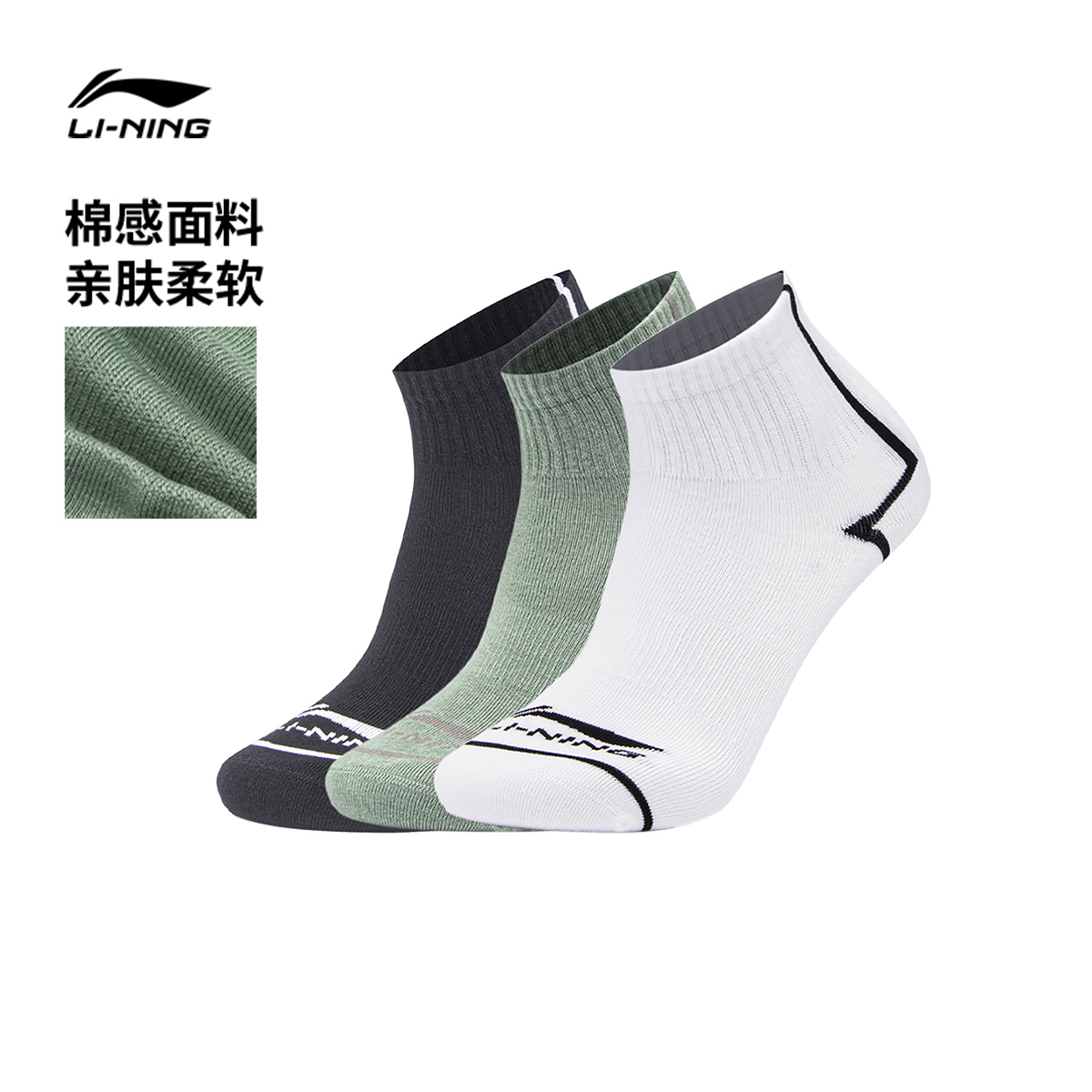 李宁短筒短袜男女士同款官方正品三双装舒适包裹百搭棉质运动袜子