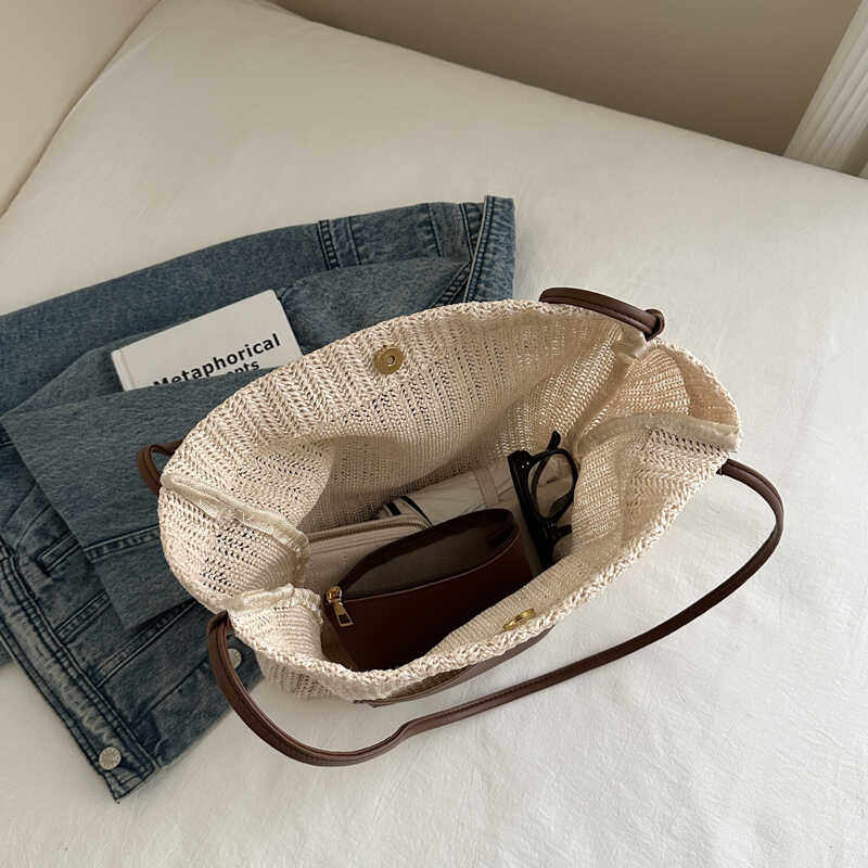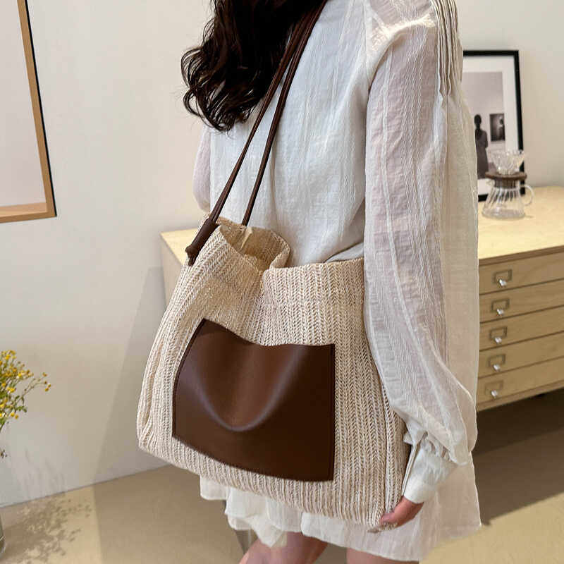 ins复古编织托特包度假风草编包单肩包大容量购物袋沙滩包子母包