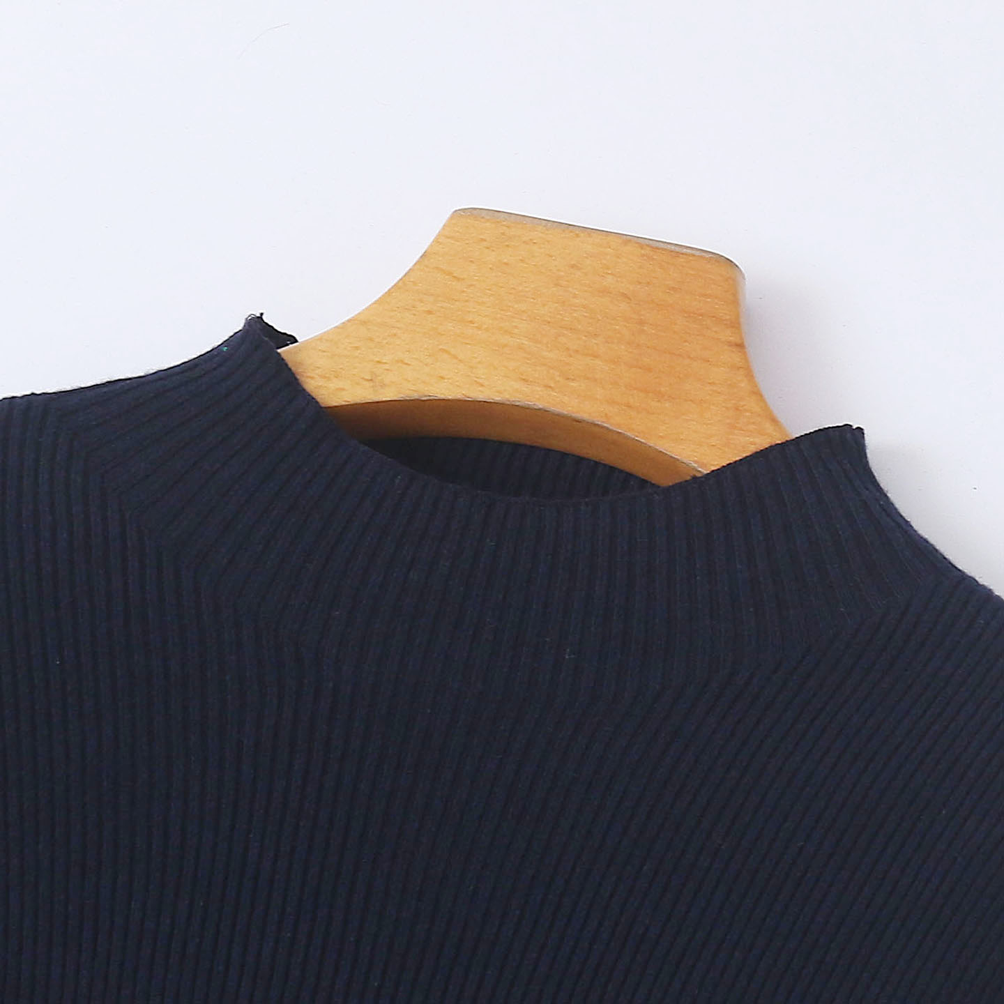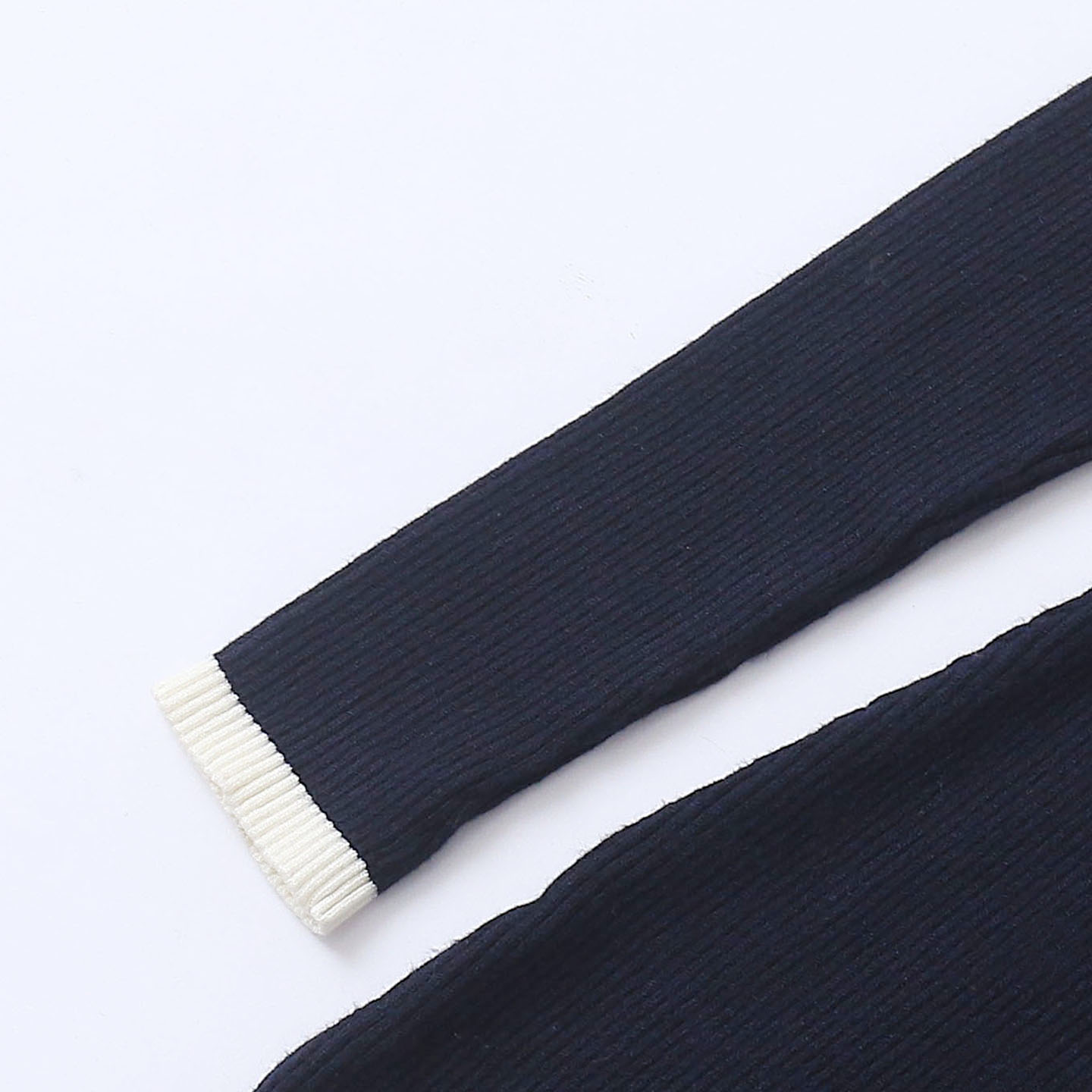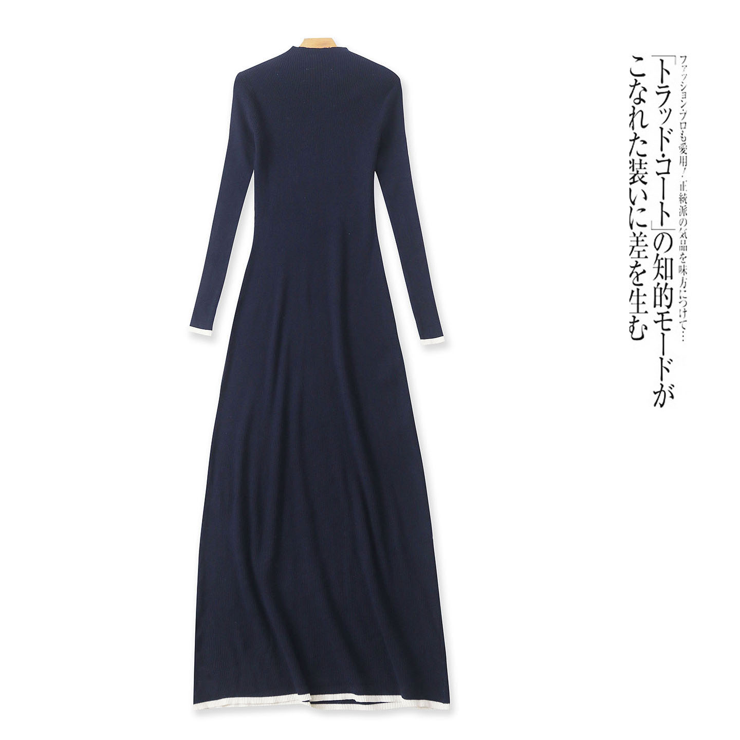 人棉针织连衣裙 秋新外贸女装半高领套头长袖包臀撞色长裙32111
