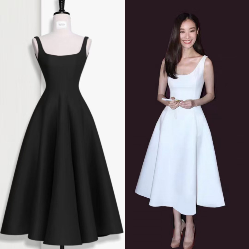 品牌现货赫本风连衣裙2025新款女装中长款吊带裙明星同款小黑礼服