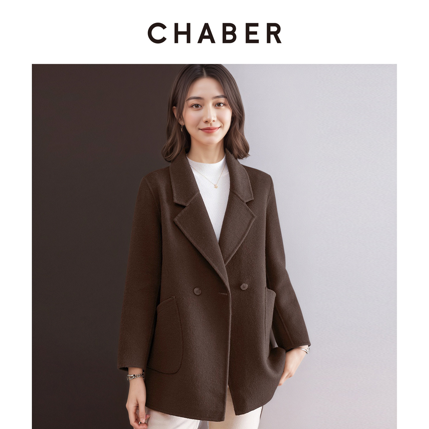 CHABER巧帛冬季新款双面羊毛大衣西装领宽松显瘦女中长款毛呢外套