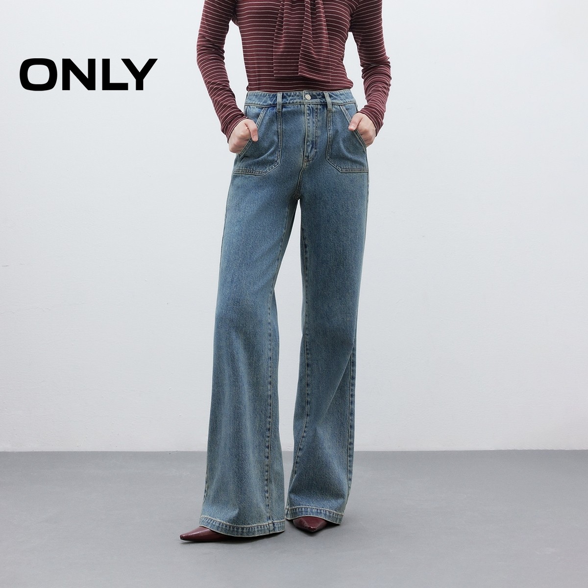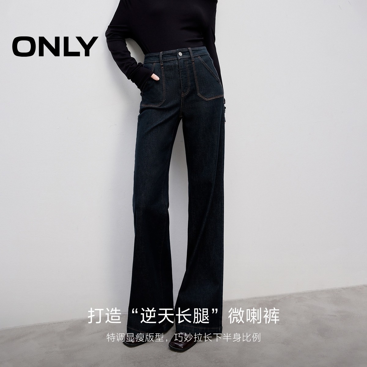 【套装】ONLY2025冬季新款不易掉色高腰显瘦喇叭神裤牛仔裤外套女