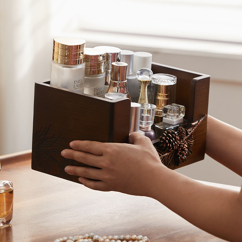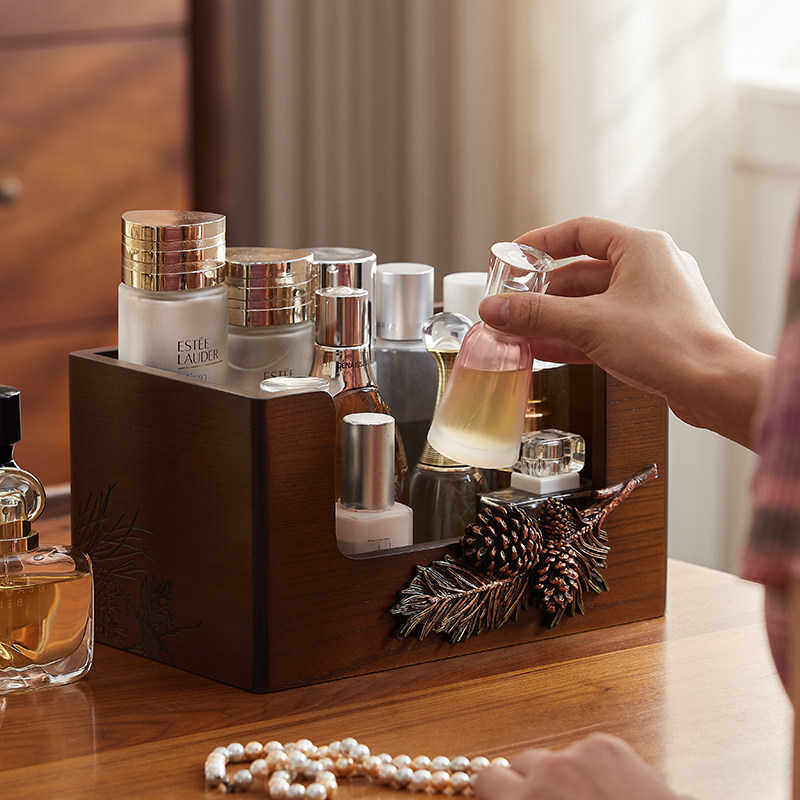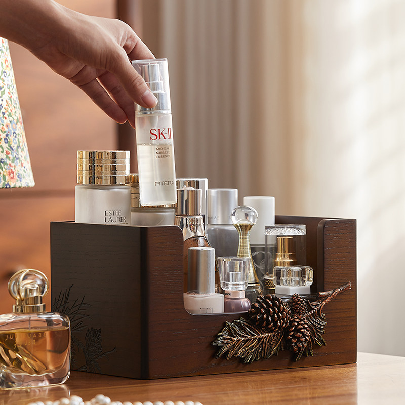 那澜多好美式复古木质收纳盒桌面梳妆台化妆品整理盒面膜盒置物架