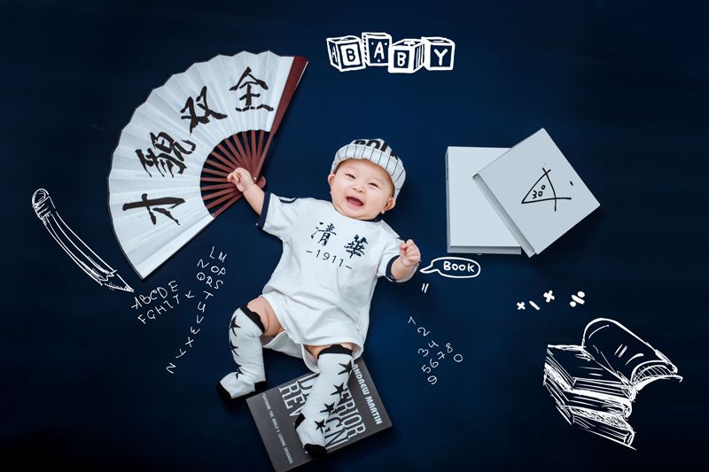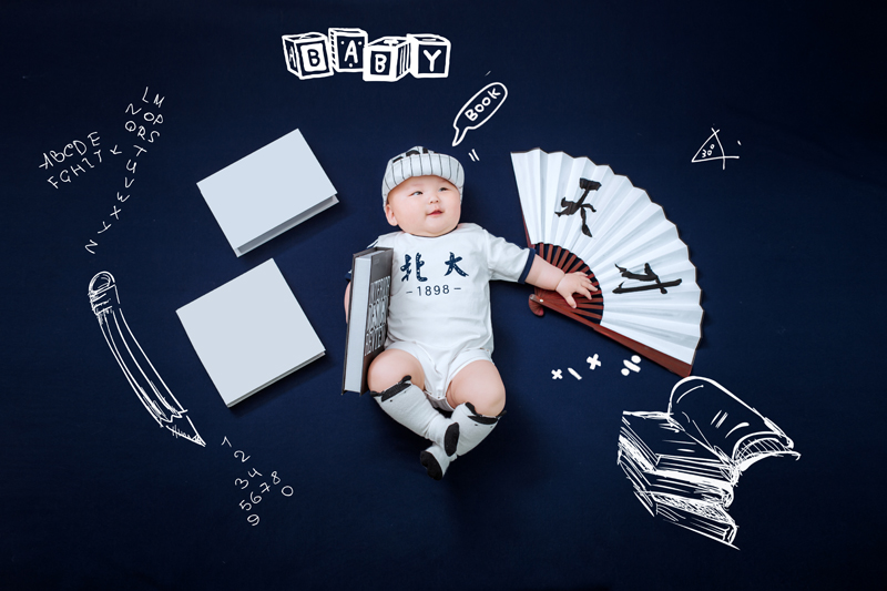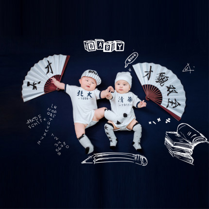 正版清华北大双胞胎儿童摄影服装影楼主题百天拍照相道具衣服半岁