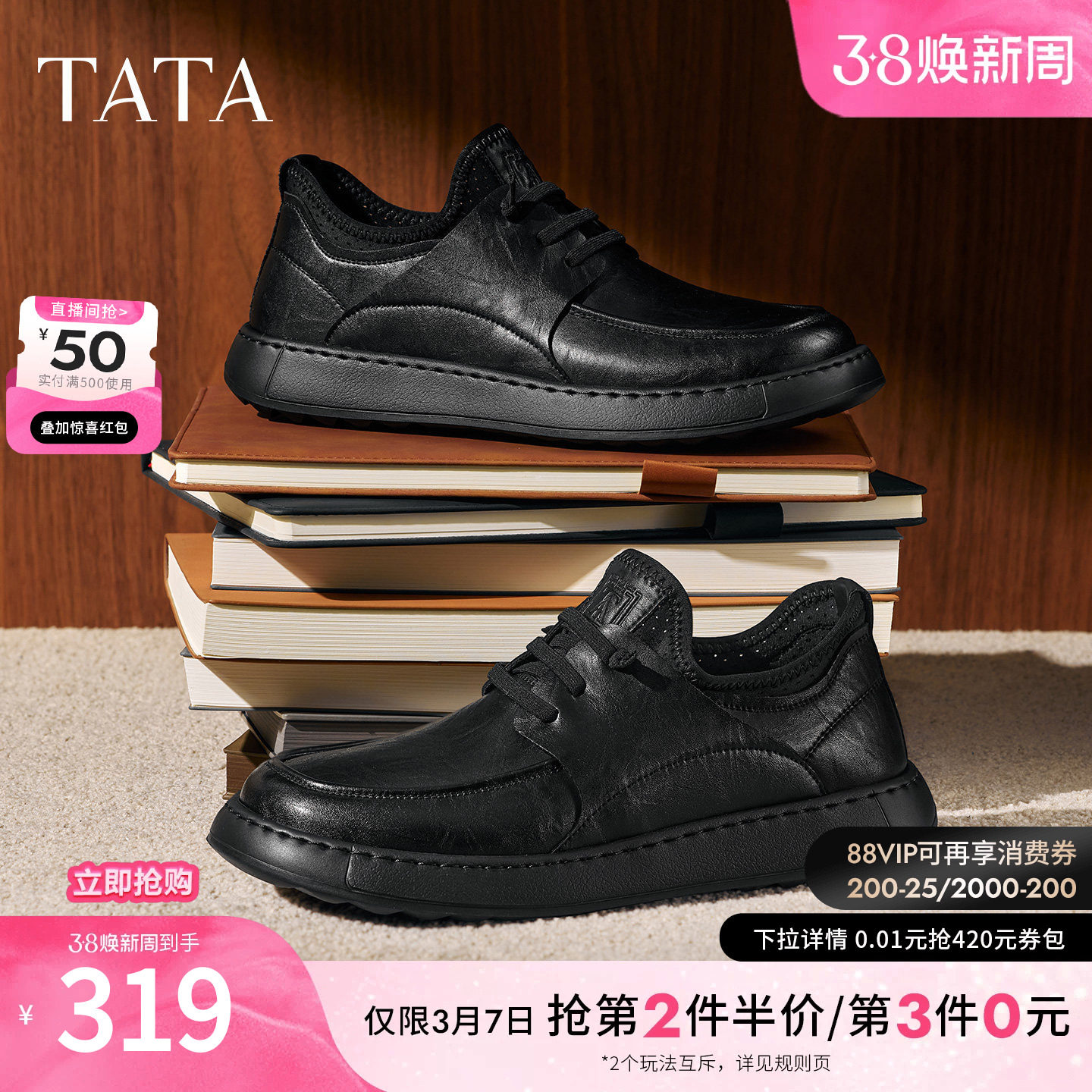 TATA他她男鞋2025冬商场同款纯色舒适百搭休闲鞋皮鞋新款OCD10CM5