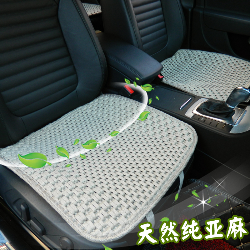 纯亚麻汽车坐垫单片加厚夏季凉垫透气三件套老板椅座垫无靠背防滑