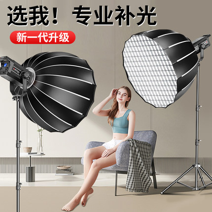大功率顶配】直播补光灯室内拍照led摄影打光主播直播间专业专用球形柔光箱聚光影视深口抛物线网格深抛格栅