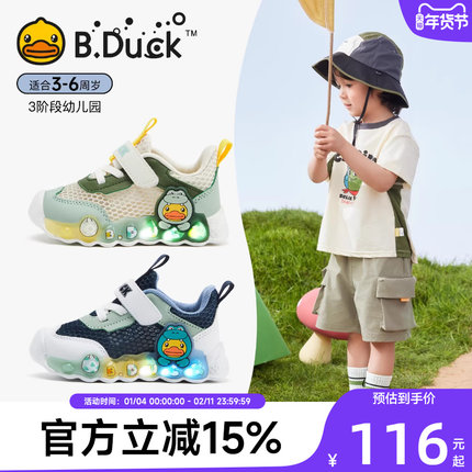 小黄鸭童鞋儿童网鞋宝宝鞋子亮灯鞋夏季款男童发光运动鞋小童灯鞋