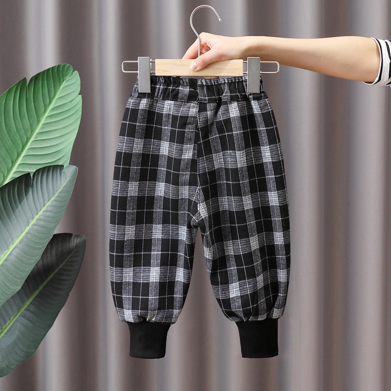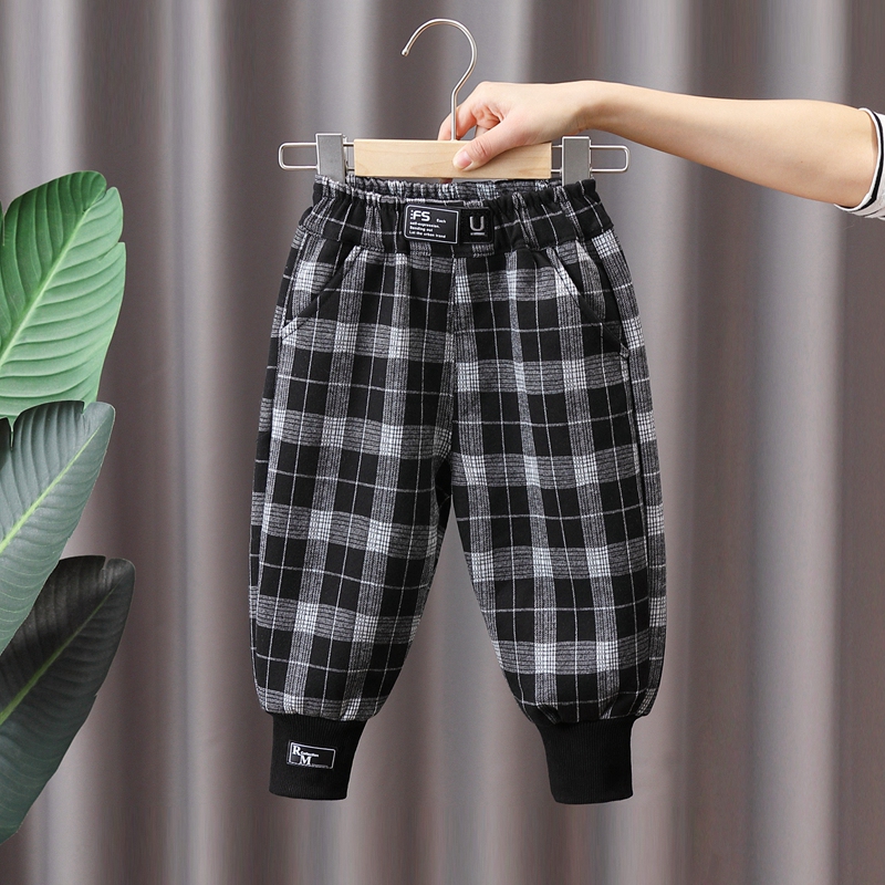 男童一体绒裤子2025新款春春装小童加厚休闲裤格子裤宝宝长裤帅气