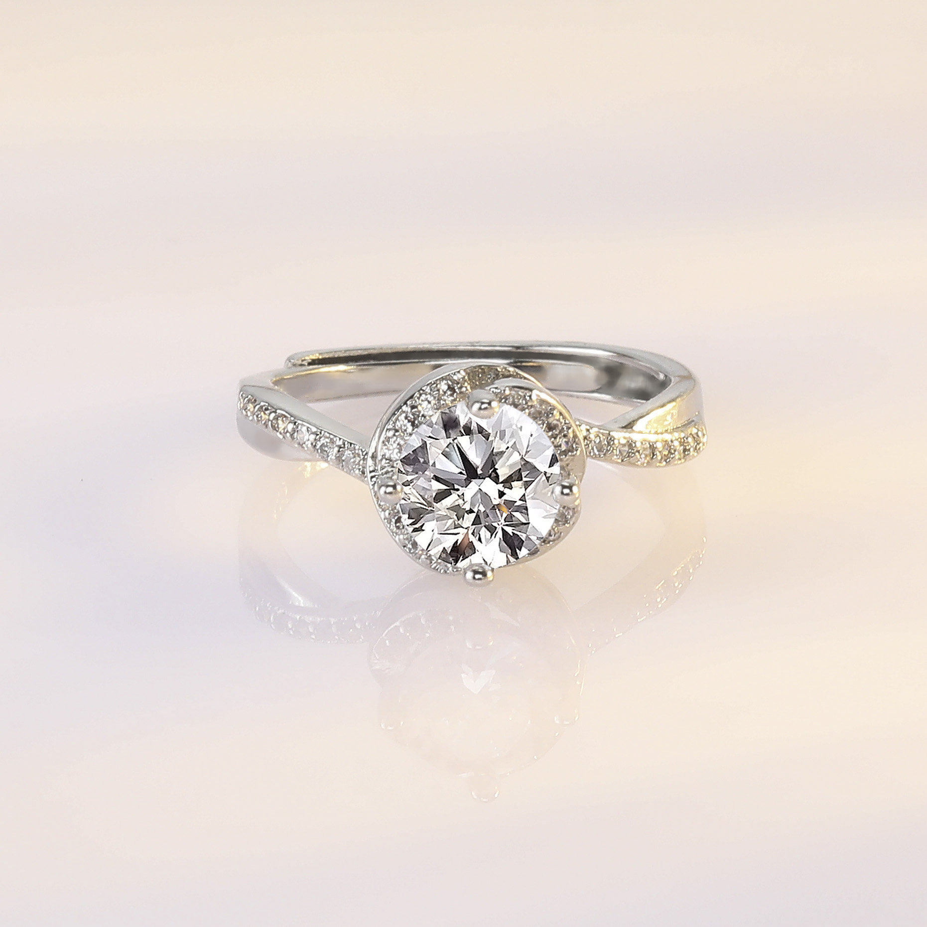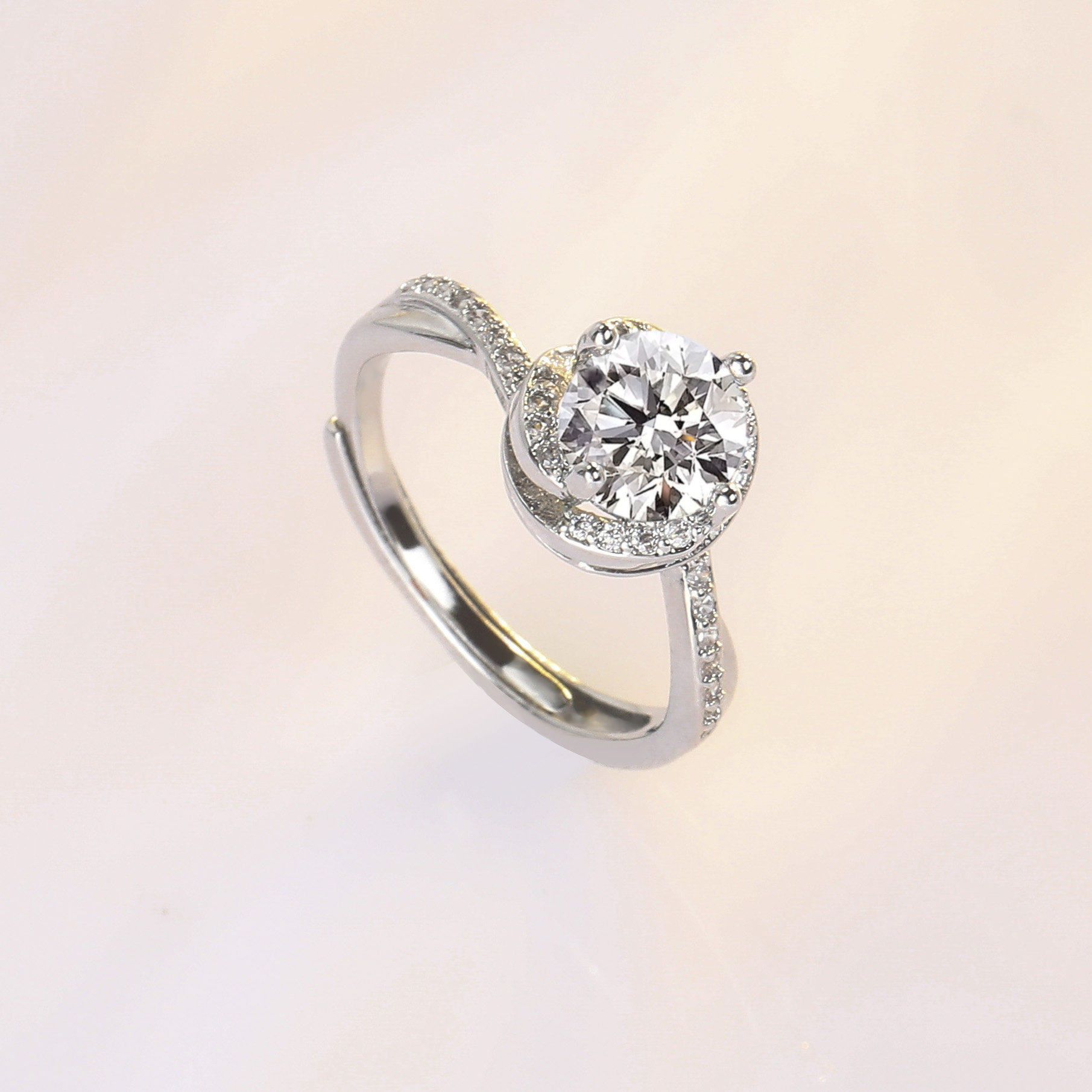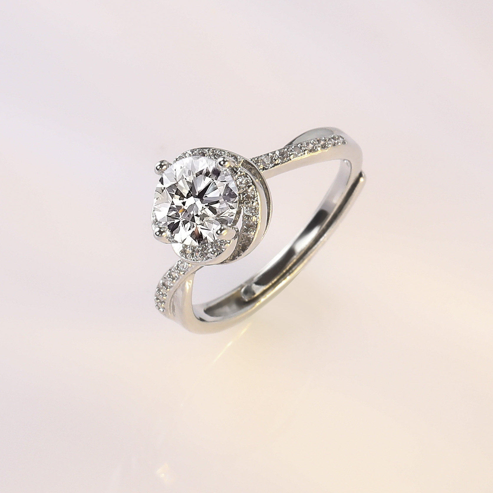 s925镀银韩版时尚一克拉硞石镶钻戒指少女简约甜美求婚结婚钻戒