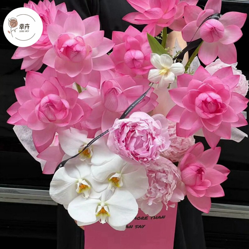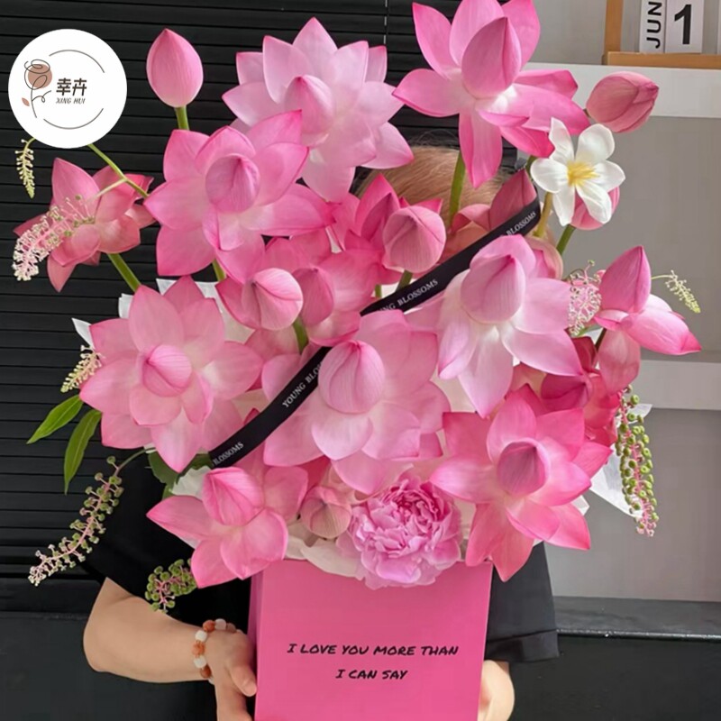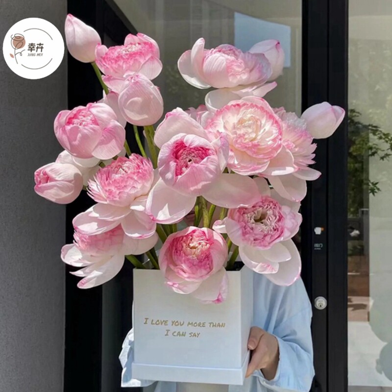 荷花花束花盒抱抱桶插花礼盒纸盒