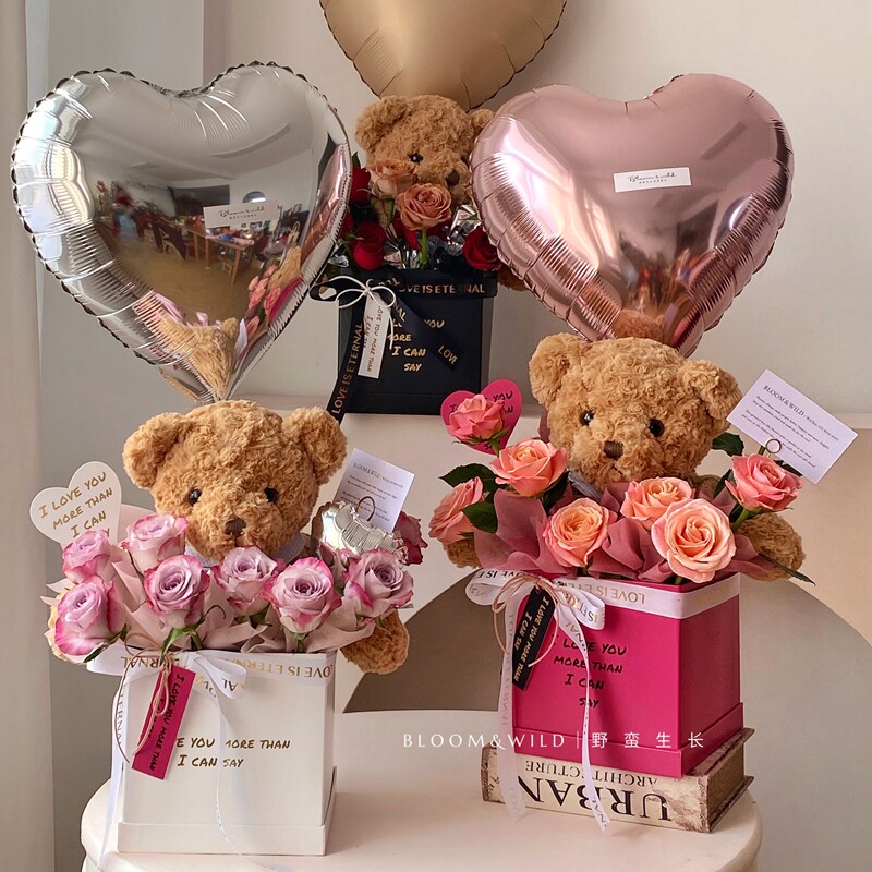 荷花花束花盒抱抱桶触感皮纹方盒简约英文花艺插花礼盒包装纸盒
