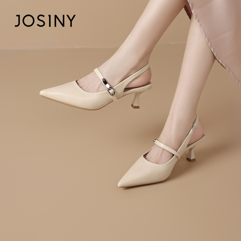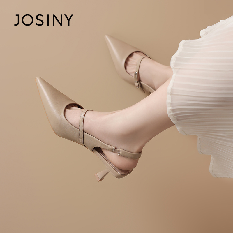 卓诗尼2025年秋夏季新款女鞋尖头细跟高跟鞋气质百搭包头凉鞋单鞋