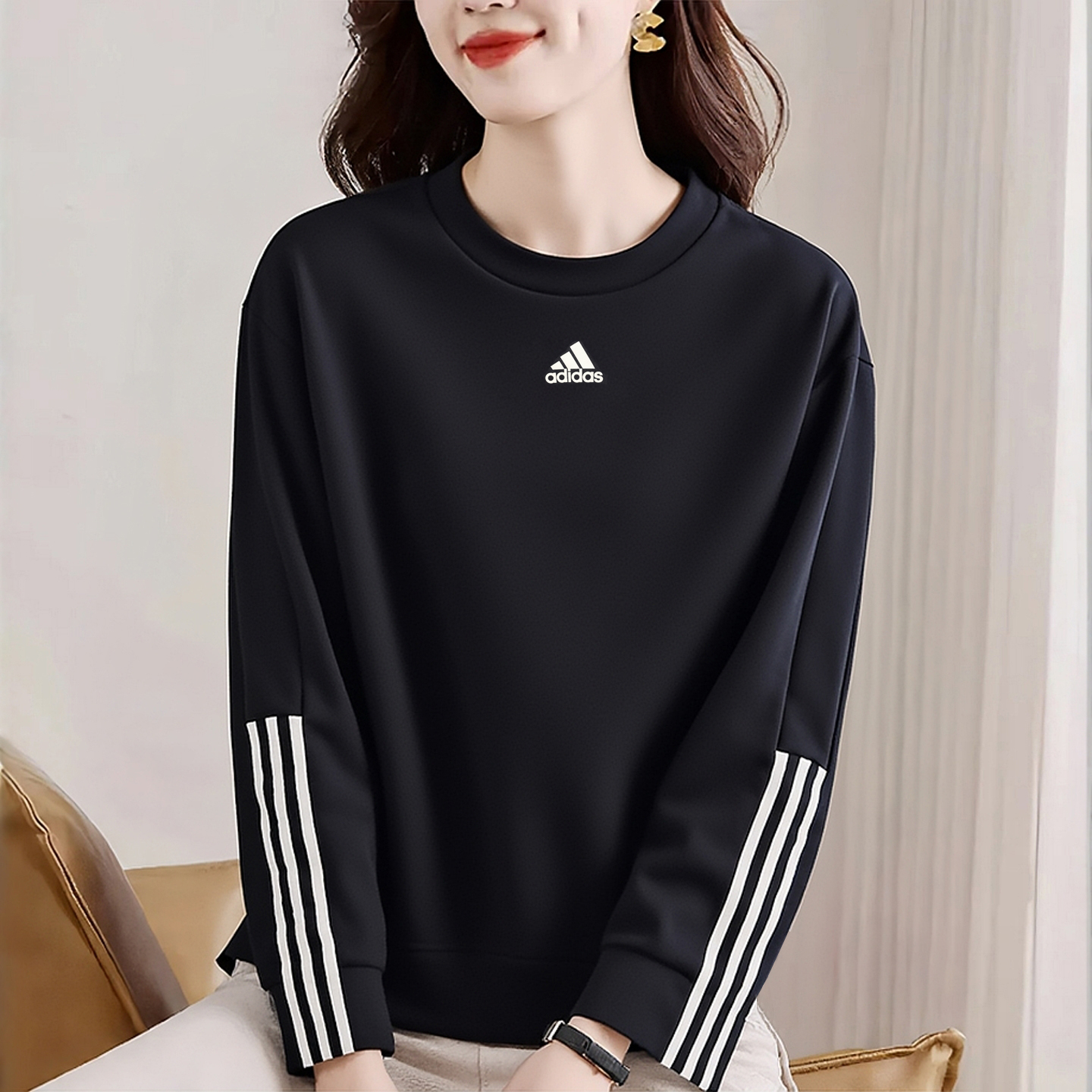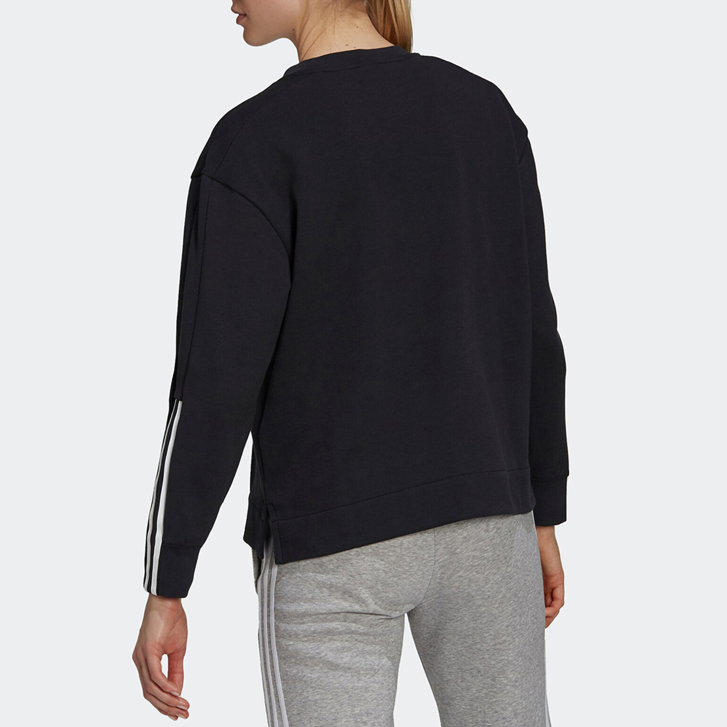 阿迪达斯卫衣女装秋季新款黑色运动服针织圆领上衣休闲宽松套头衫