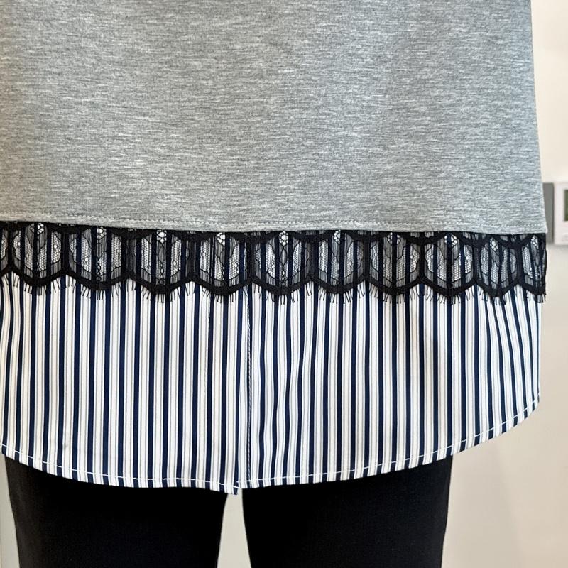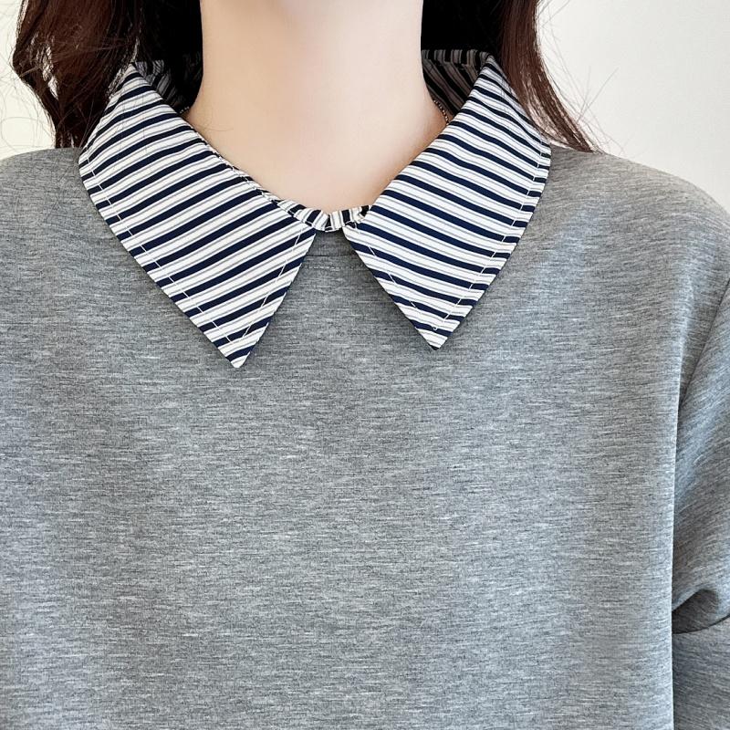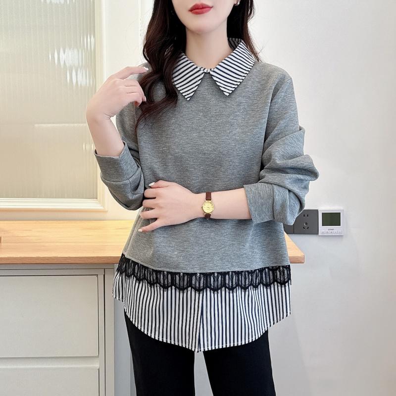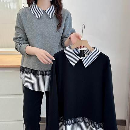 假两件卫衣大码春秋新款休闲百搭条纹拼接长袖宽松遮肉显瘦上衣