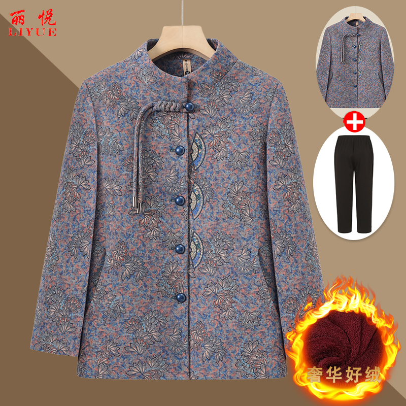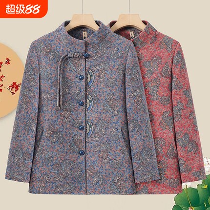 中年妈妈装秋款唐装外套气质老人女奶奶春秋款毛呢子上衣高档衣服