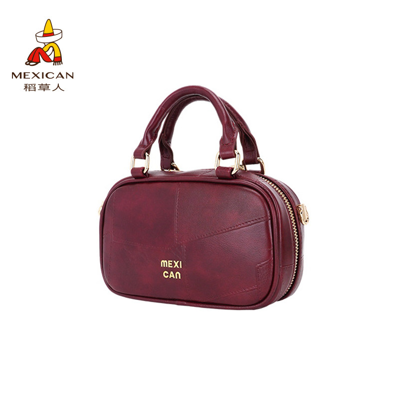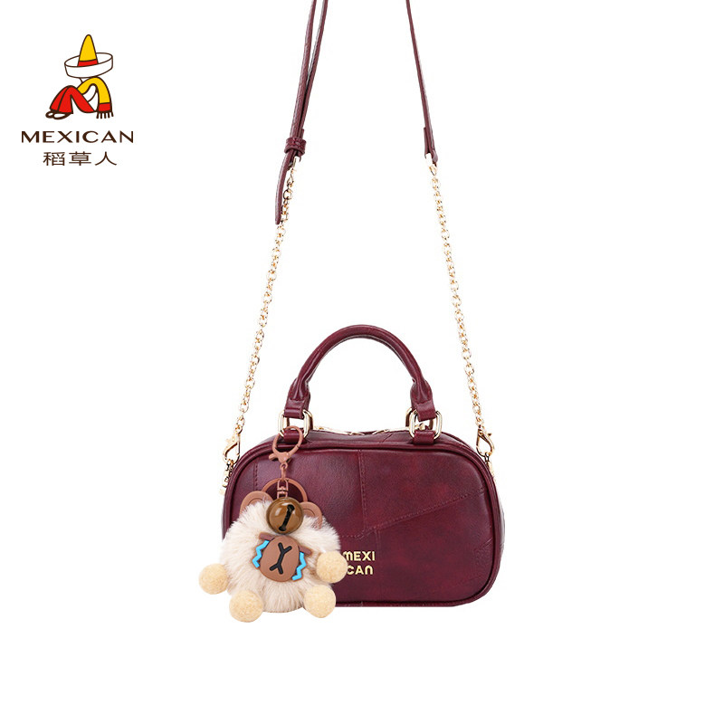 稻草人新款包包女秋冬美拉德波士顿包小众拼接手提斜挎包通勤女包