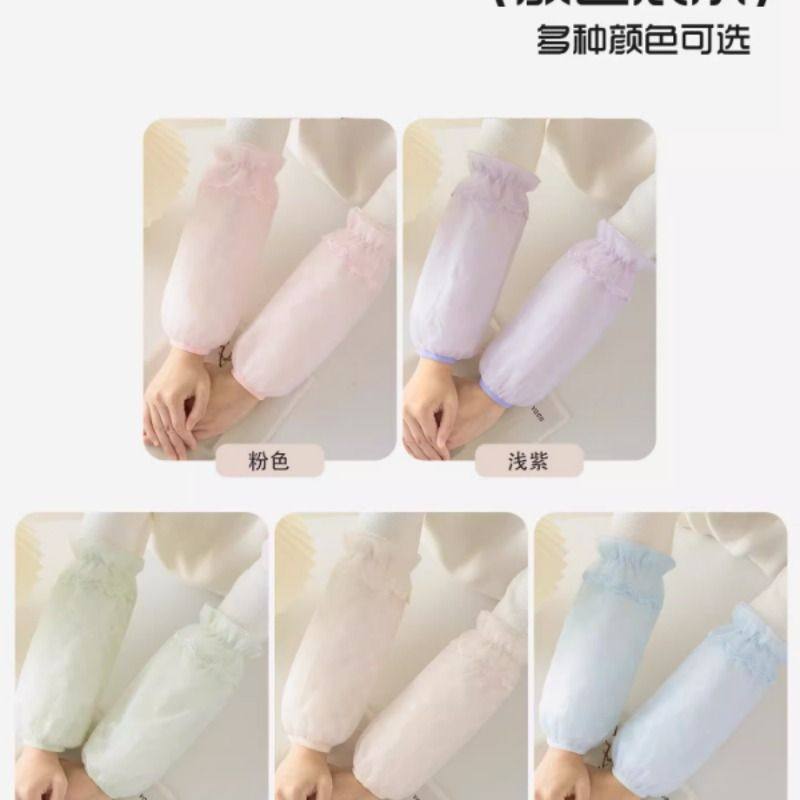 蕾丝袖套秋冬季长款羽绒服套袖女士工作袖筒学生防脏护袖儿童袖头