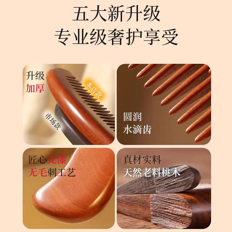 天然正品老桃木梳子女士专用蓬松颅顶家用按摩细齿新款防脱发梳子