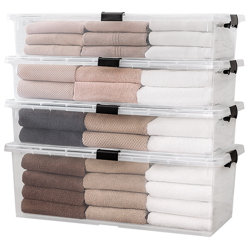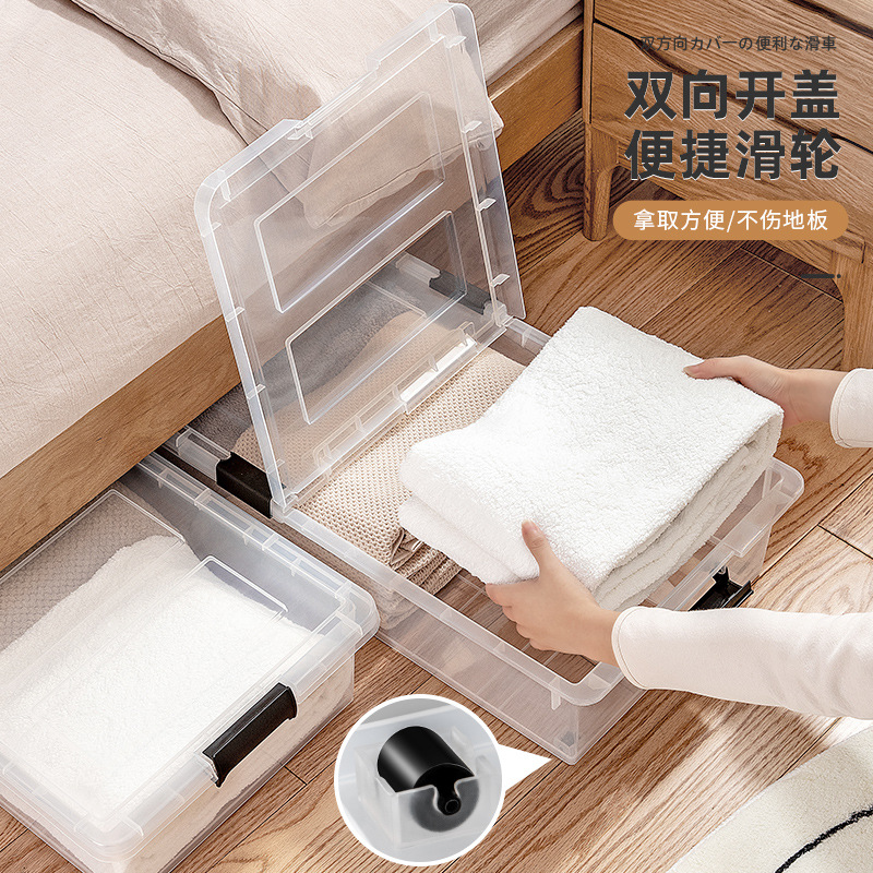 透明床底收纳箱带轮扁平塑料放床下整理收纳盒家用翻盖衣物储物箱