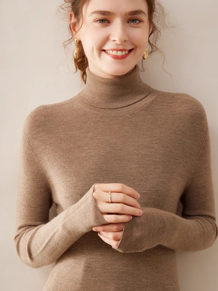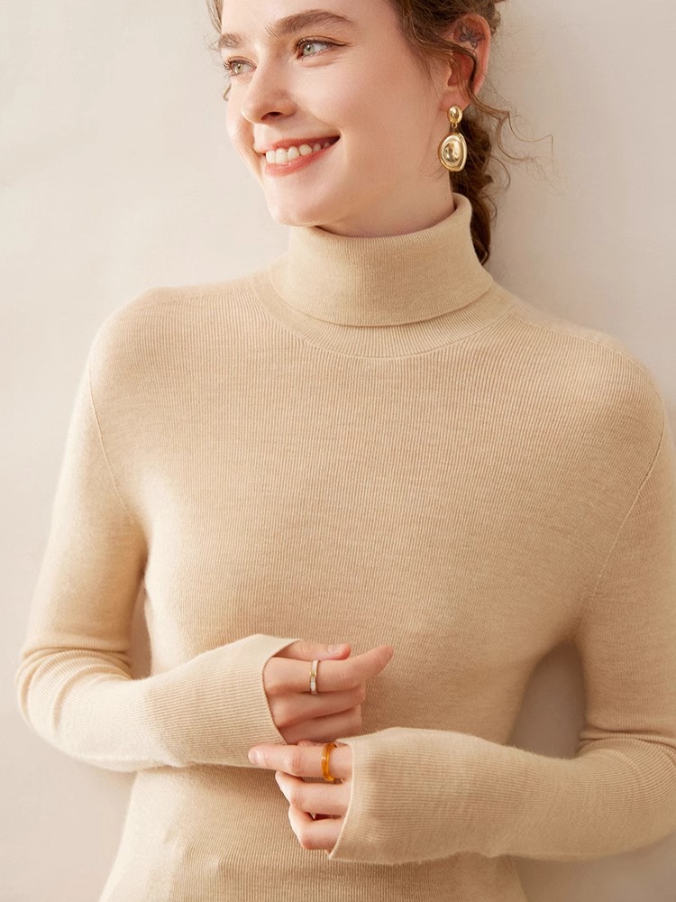 2024冬季新款高领羊绒衫女纯羊绒精纺68支薄款修身显瘦针织打底衫