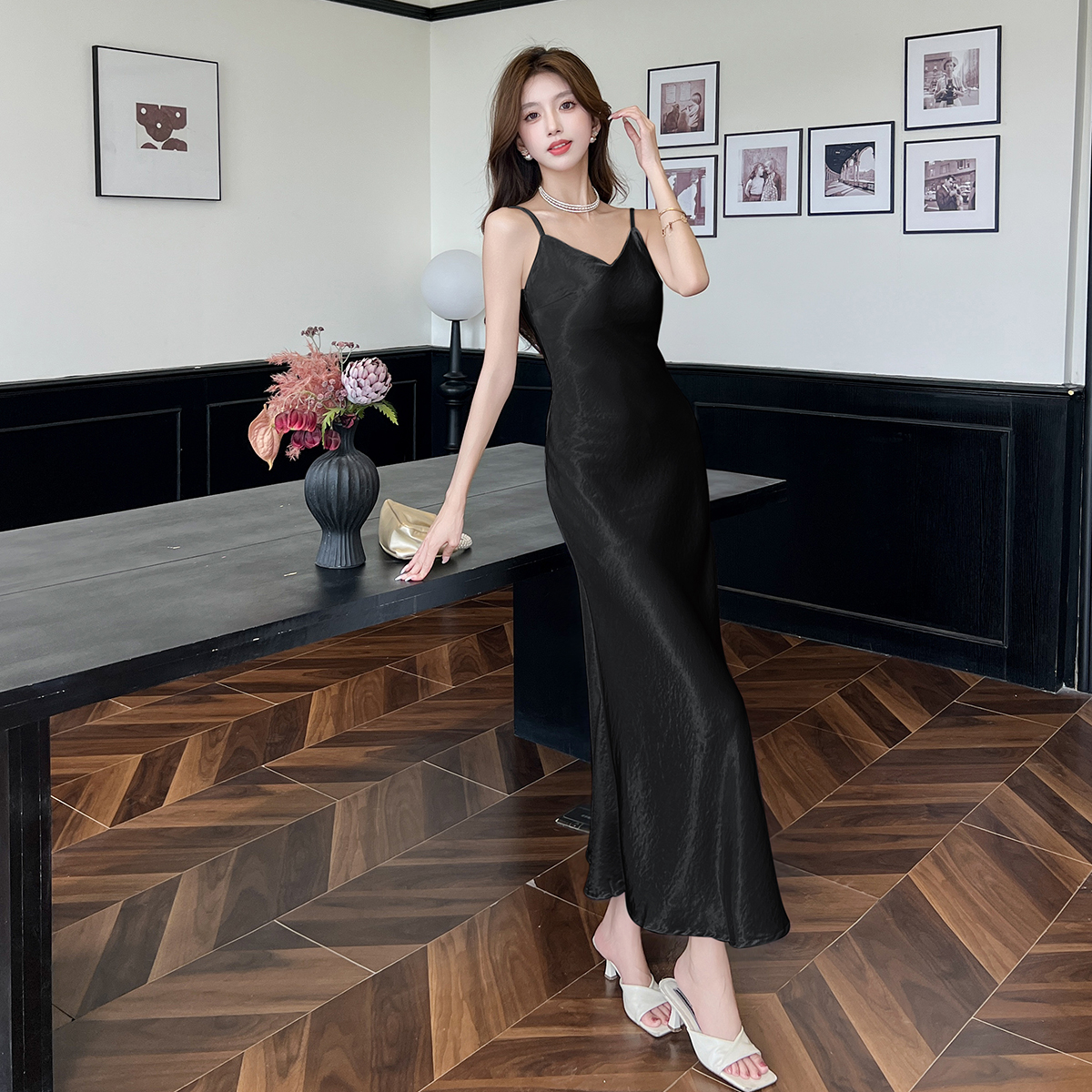 冬季150cm矮个子小个子XXS新款时尚吊带裙鱼尾裙高级感缎面连衣裙