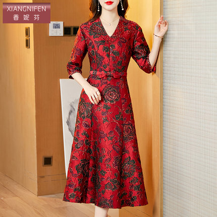 香妮芬高端精致金丝面料妈妈宴会晚礼服2026新款喜婆婆婚宴敬酒服