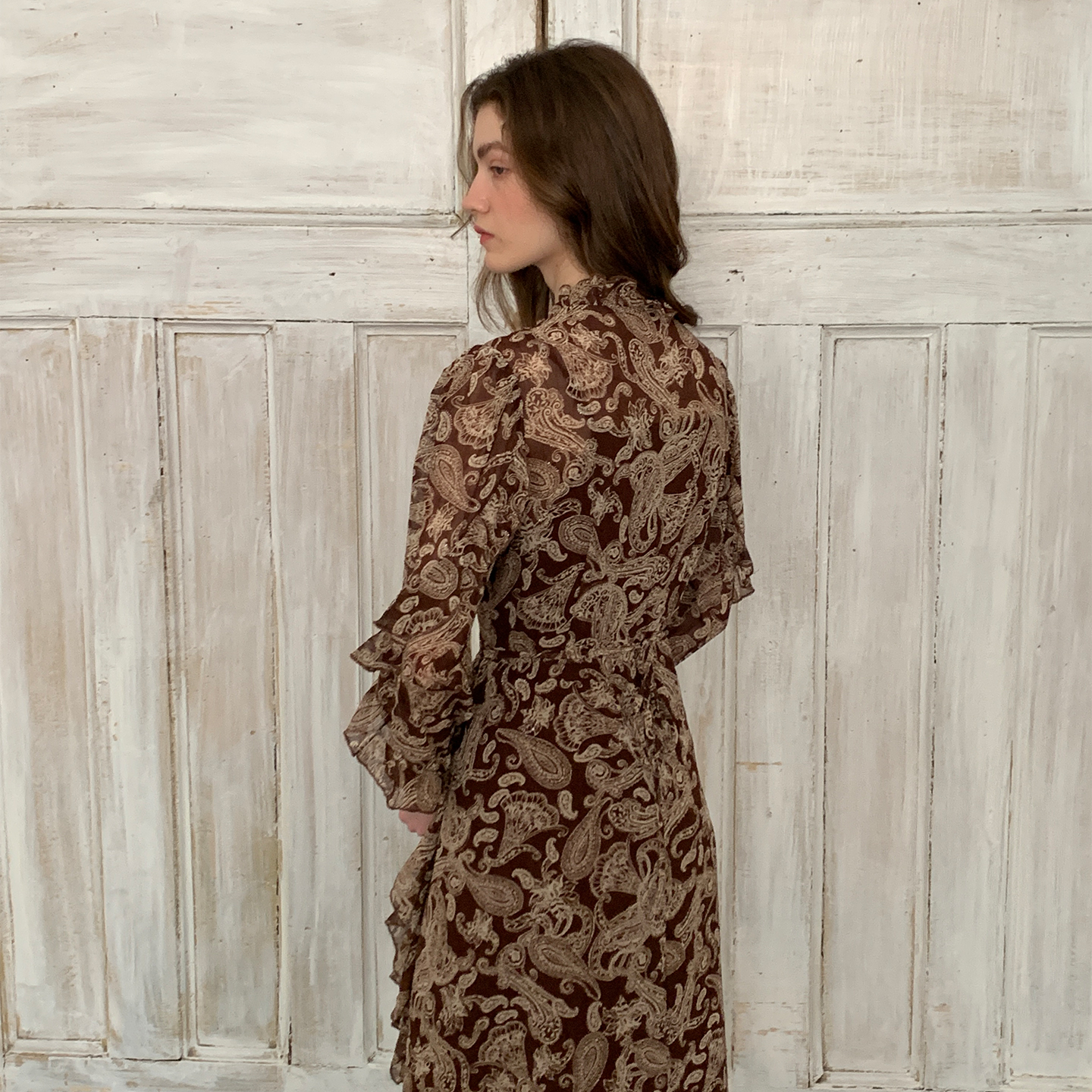 ZHUYIYI 早秋新款法式不规则荷叶边长袖秋季连衣裙收腰显瘦长裙