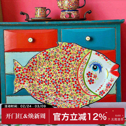 鱼形盘子碗家用2026新款创意手绘陶瓷超大号水果盘装饰摆盘高颜值
